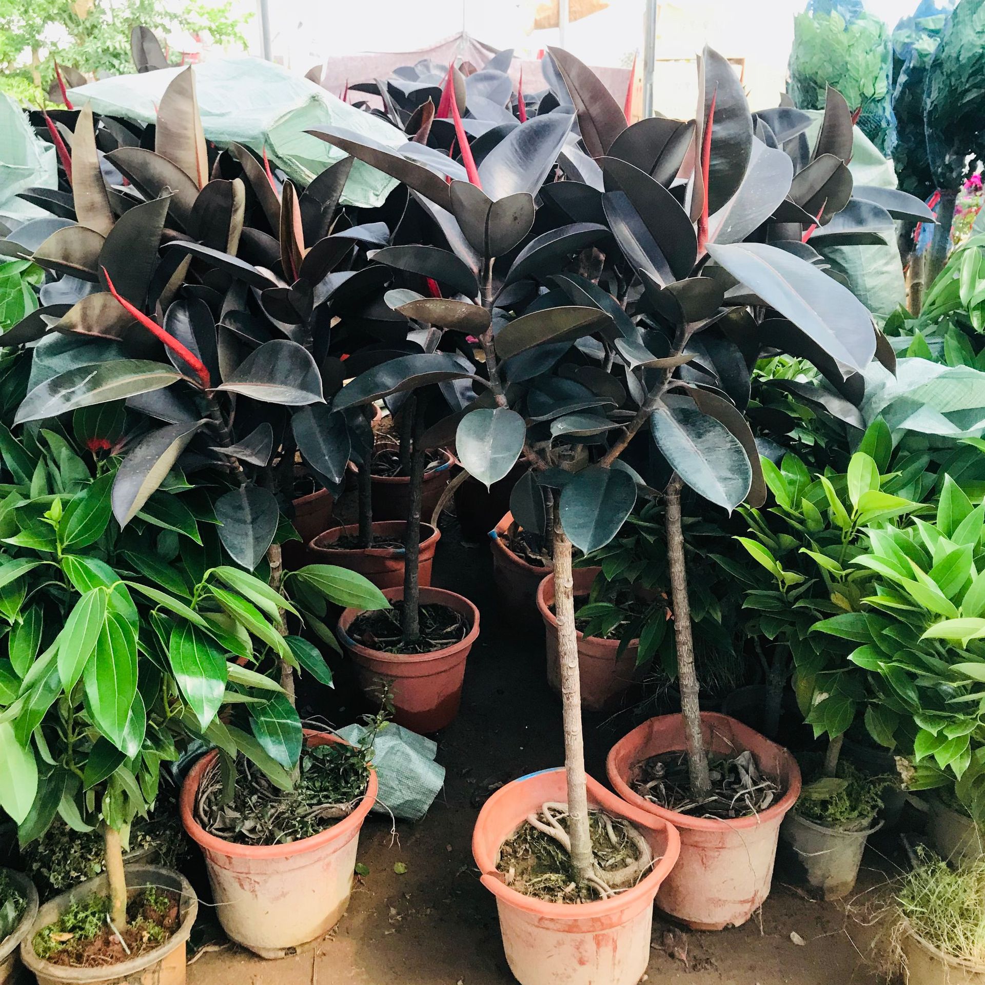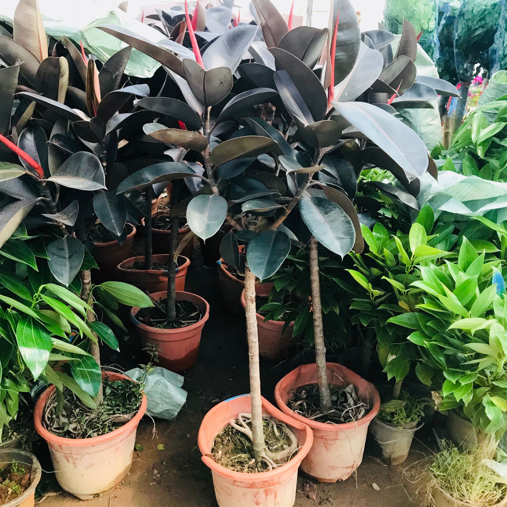 Оптовые продажи в помещении гостиной в горшках зеленое каучуковое дерево Черный бриллиант горшечные растения вид Four Seasons вечнозеленые растения в горшках