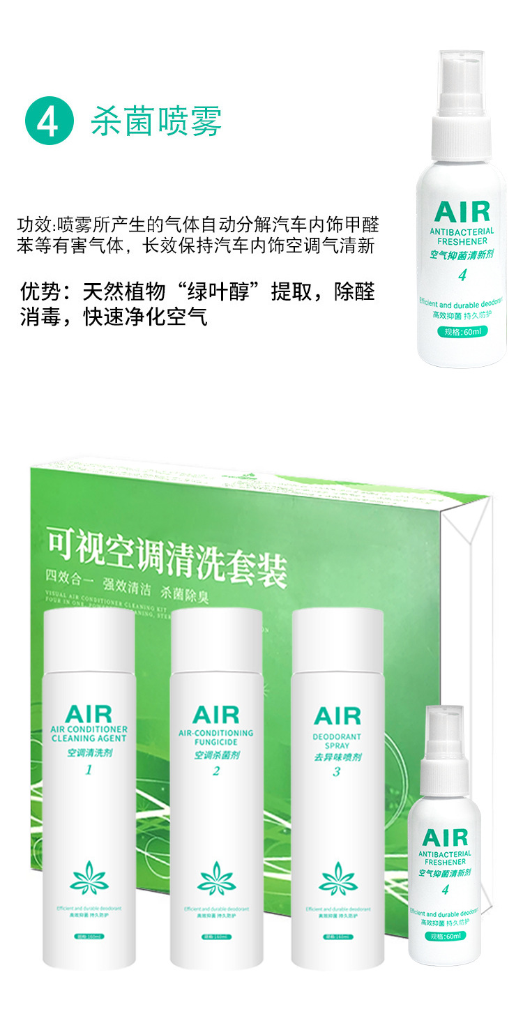 Автомобильный кондиционер чистящее средство четыре-в-одном визуальная очистка стерилизация удаление запаха очистка воздуха и техническое обслуживание костюм оптом
