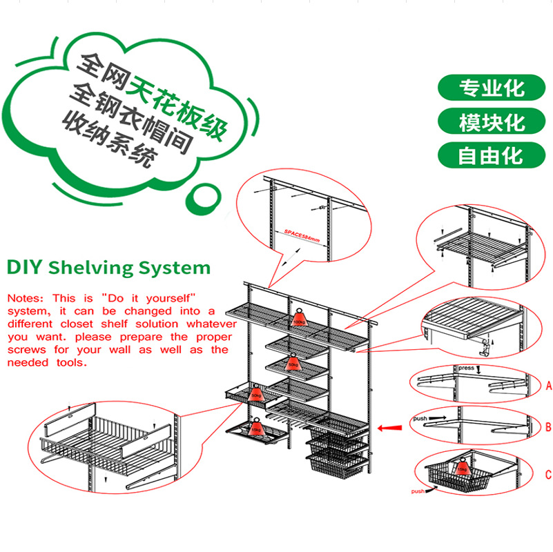 Прогулочная металлическая гардеробная с вертикальным Рельсом
