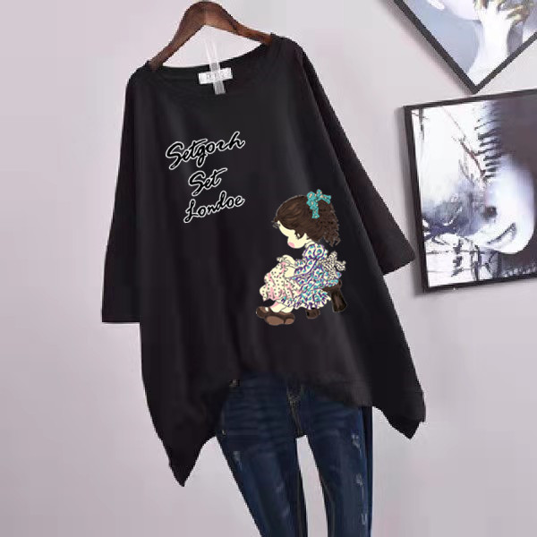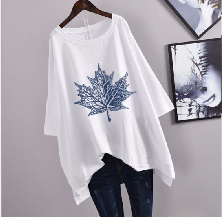 100kg Женская летняя повседневная футболка с коротким рукавом и принтом листьев больших размеров, свободного кроя, в стиле оверсайз.