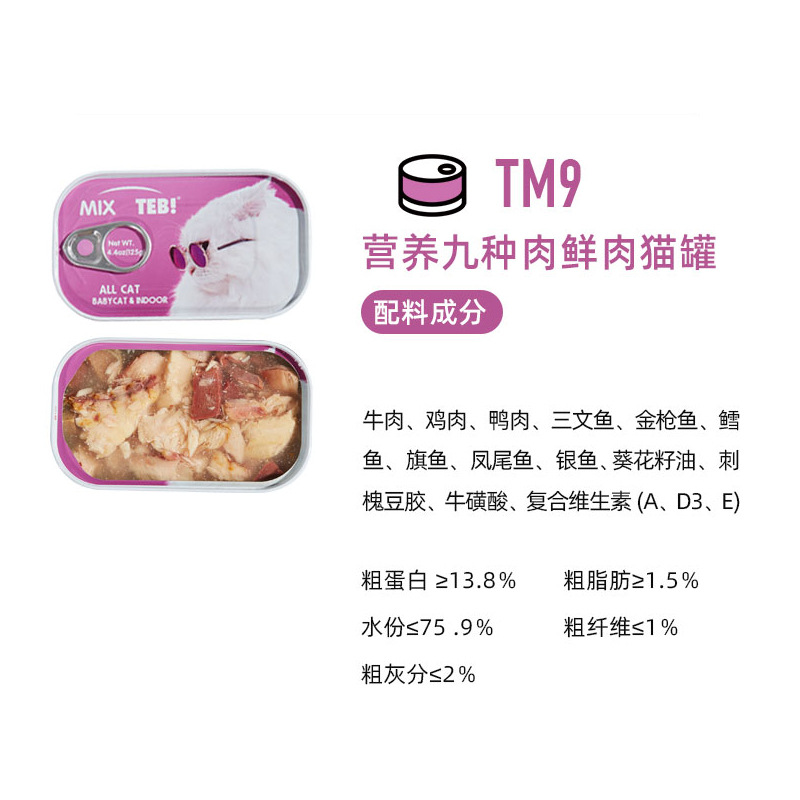 Тэб! Tang Enbei TM Кошки Питательный Ланч-бокс Девять видов мяса Шесть видов рыбы Кошки Жир и жаберный штамп Пищевой горшок 125 г