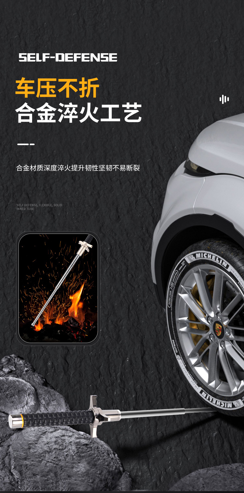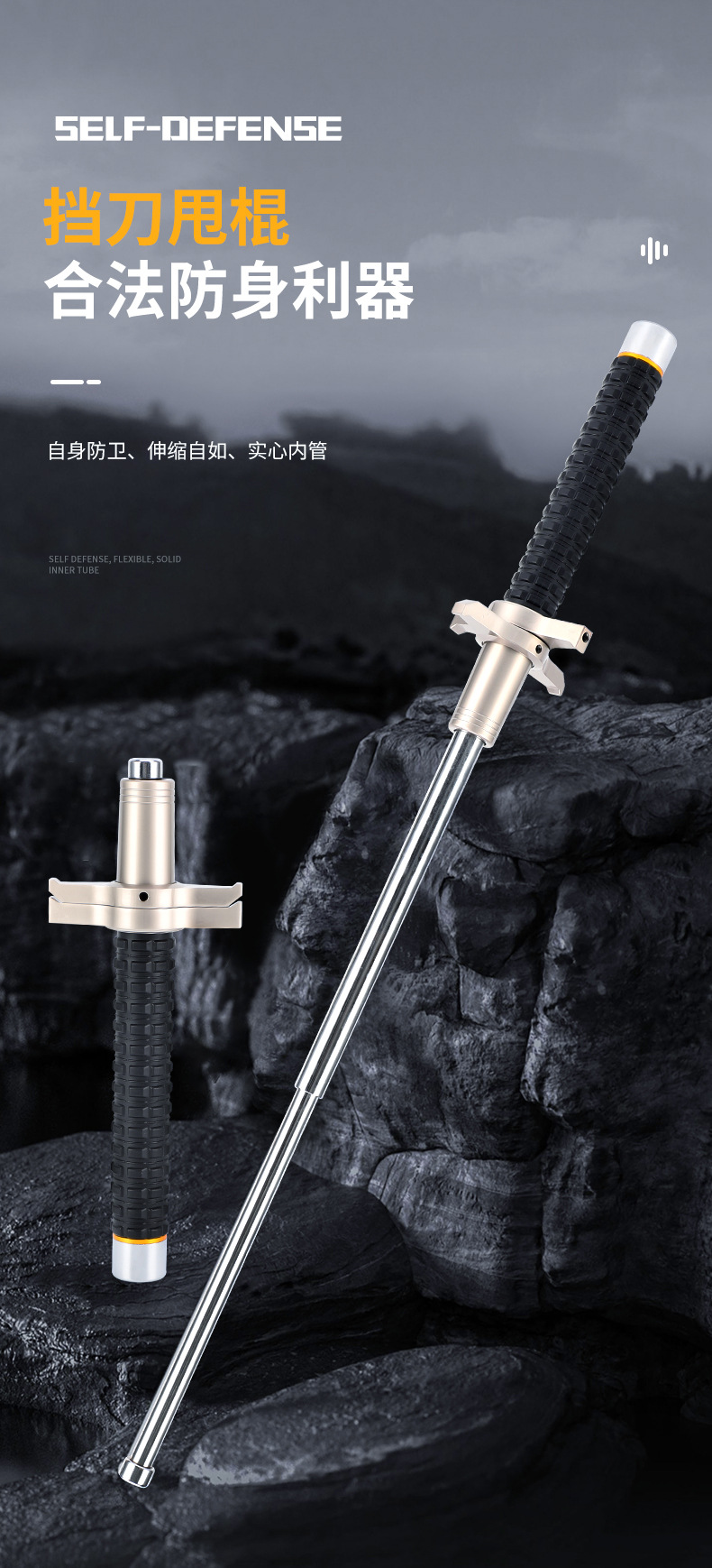 Многофункциональная Поворотная палка, цельный блочный нож, складной телескопическая трехсекционная палка из сплава, портативная Защитная палка, принадлежности для наружной безопасности