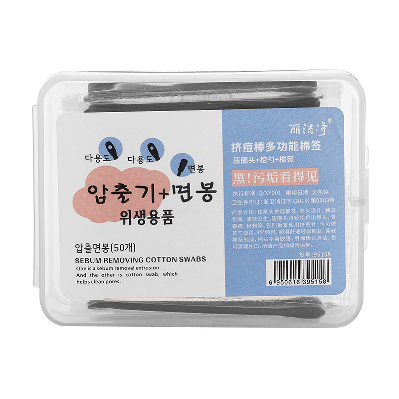 产品介绍:祛黑头护理棉签,双头设计,独立包装,便捷卫生。压圈头可以轻松挤出黑头,青春痘,粉刺等,告别重复使用挤痘针;也可做挖勺使用,45°倾斜,顺滑舒适轻松掏耳;柔软棉花制成,棉头不易脱落,用棉棒头清洁,也可清洁产品细缝污垢等。