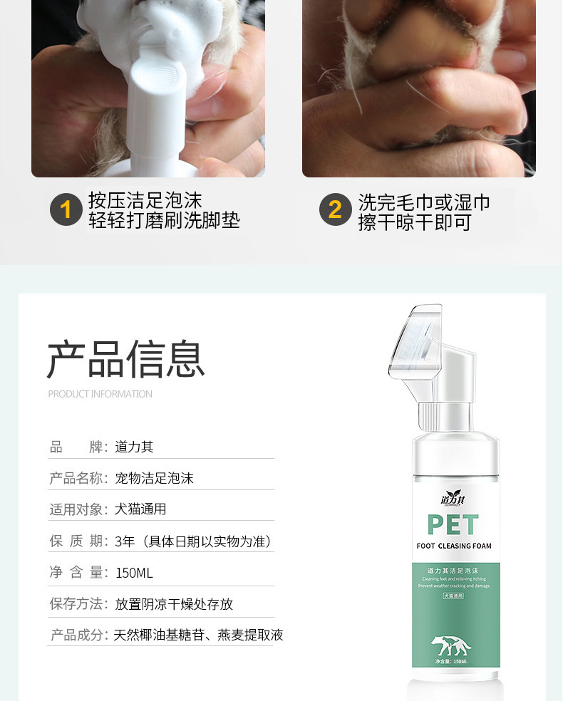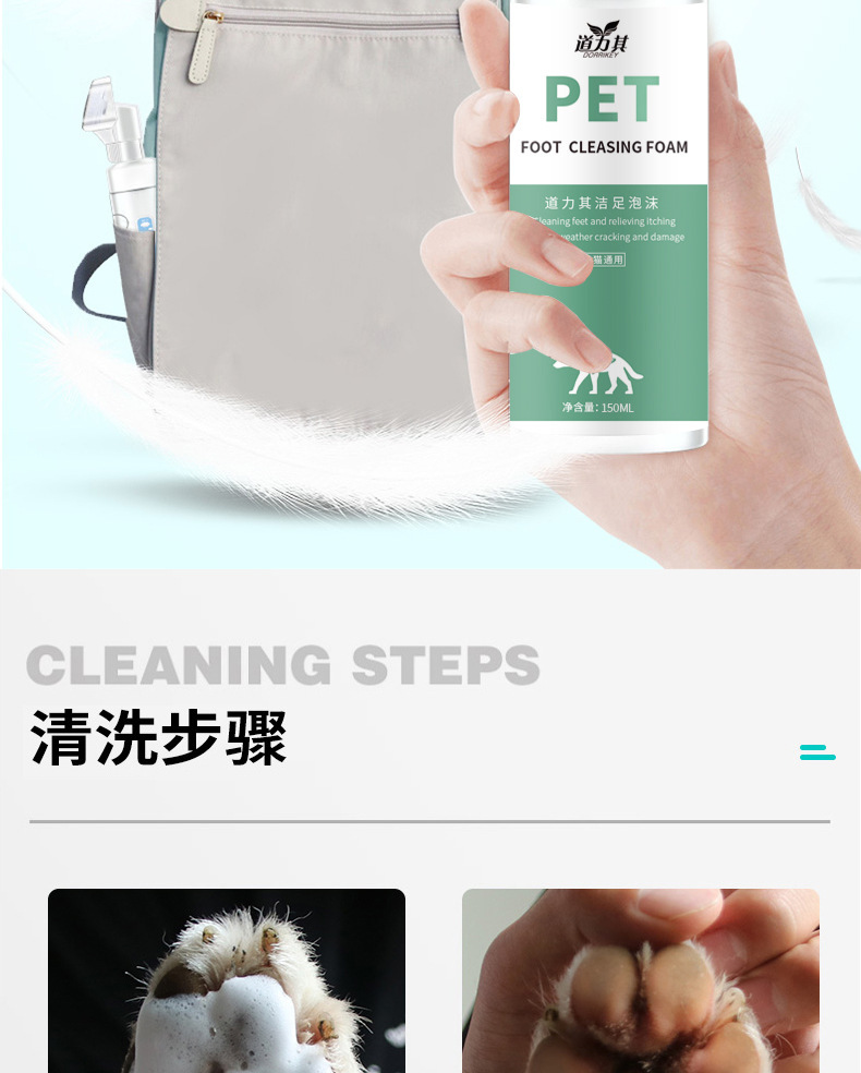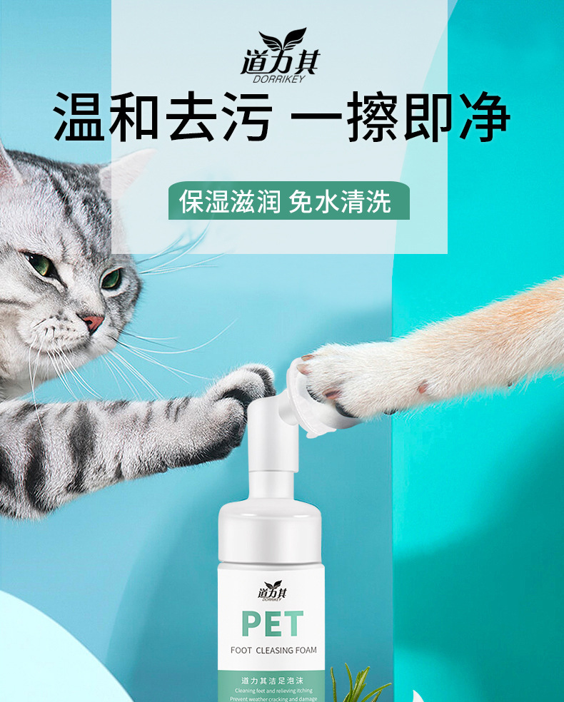 Пенка для очищения лап животных Daoliqi, 150 мл, дезодорант для лап собак и кошек, универсальное средство для мытья лап собак, очищает, дезодорирует и стерилизует.