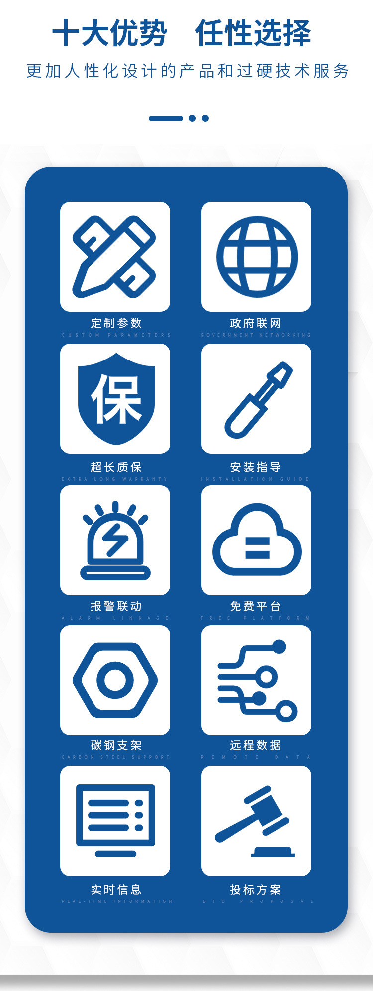 ·通信方式:传感器支持modbus485,云平台支持GPRS通信,支持RS232数据输出,支持Lora无线通信,