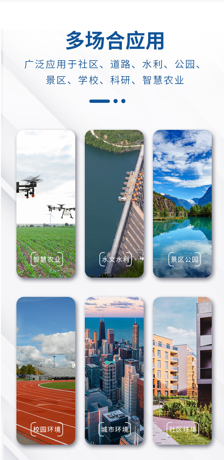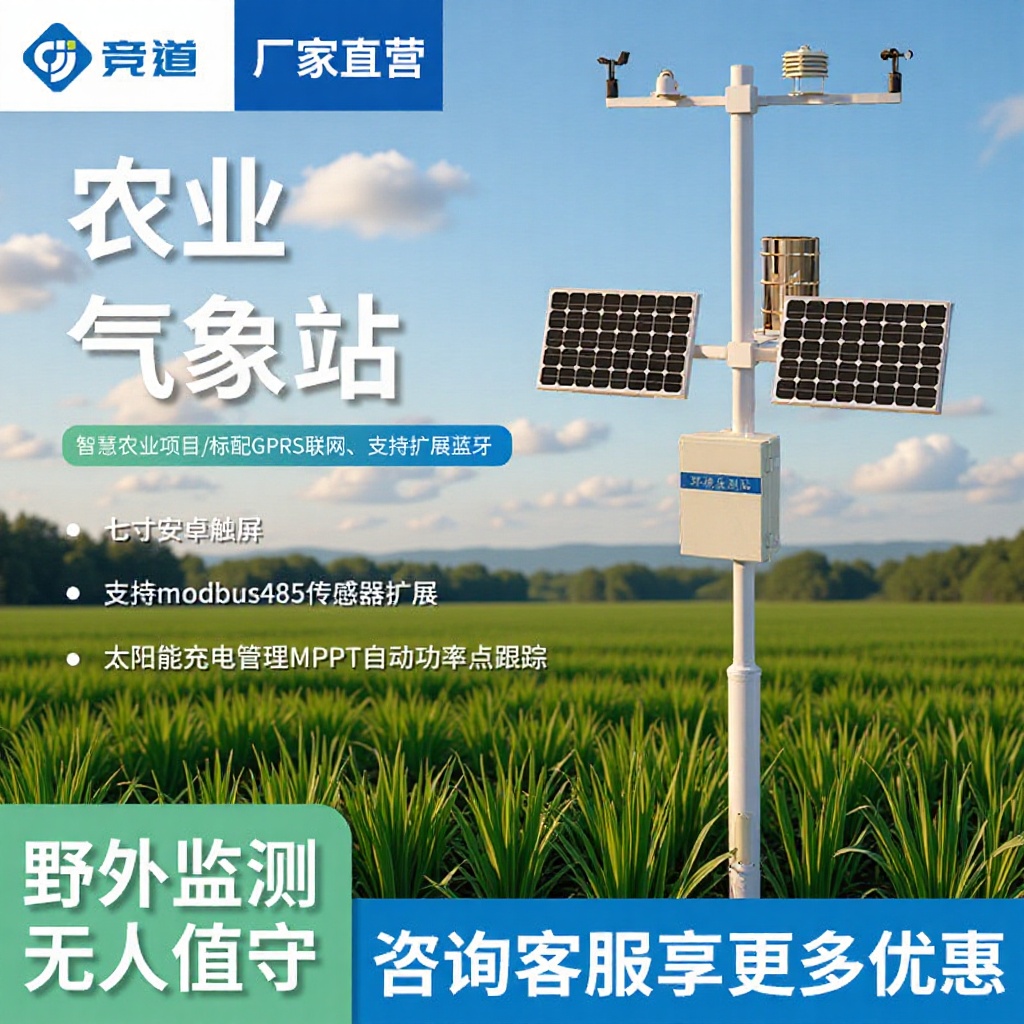 竞道气象站是按照国际气象WMO组织气象观测标准,研究而开发生产的多要素自动观测站。可监测风向、风速、温度、湿度、气压、雨量、土壤温湿度等常规气象要素,具有自动记录、超限报警和数据通讯等功能。自动观测站由气象传感器,气象数据记录仪,气象环境监测软件三部分组成。另外,还有超声波气象站、防爆气象站,可咨询客服。广泛应用于工农业生产、旅游、科研、气象等城市环境监测和其它专业领域。
