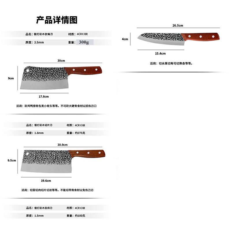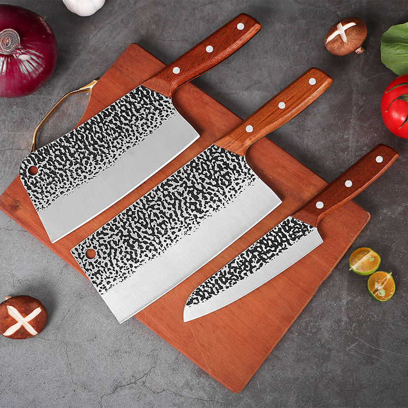 Имитация ручной ковки с рисунком молотка Бытовой кухонный нож Набор из трех предметов Кухонный нож из нержавеющей стали Нож для нарезки мяса Измельчитель Резак костюм