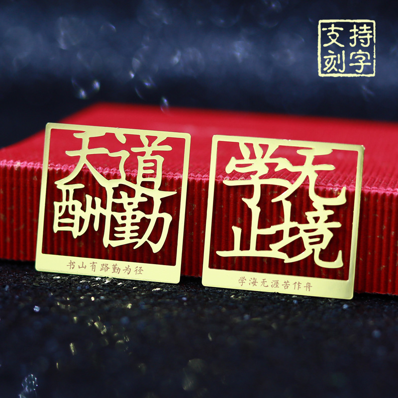 Креативный текст Латунный металлический зажим для подписи книги Классический не отрицательный Золотой список Шаохуа Название Полый зажим для книги Гравировка Настройка