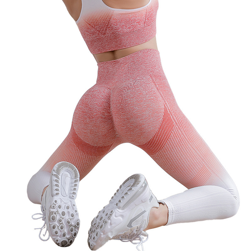 Готовые к отправке бесшовные леггинсы для йоги с высокой талией, эффектом подтяжки ягодиц, дышащие, с градиентным цветом, женские спортивные леггинсы.