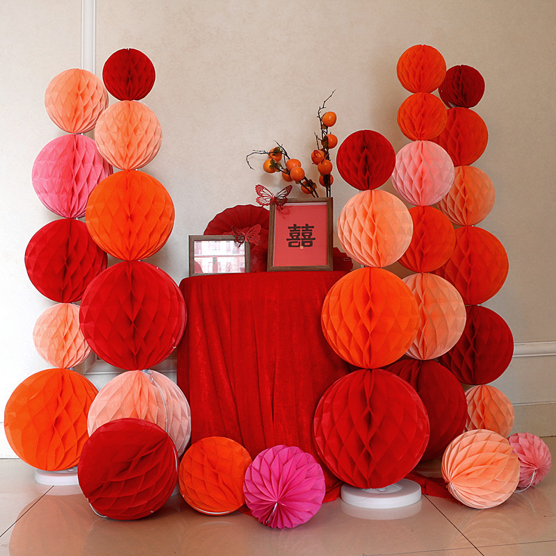 Праздничная свадебная комната сотовый шар бумажная нить Свадебная колонна фон украшение свадебной церемонии украшение сотовый шар фон Стена