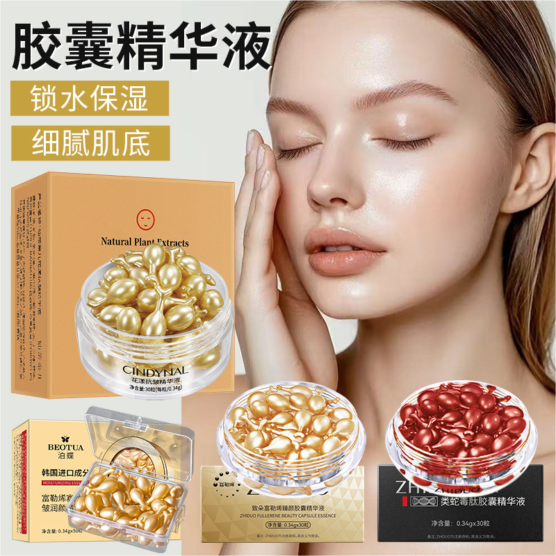 Эссенция против морщин Sentinel Flower 0,34 г x 30 капсул; BEOTUA Butterfly Fullerene Oligopeptide Увлажняющая эссенция против морщин 0,34 г x 20 капсул; BEOTUA Butterfly Fullerene Oligopeptide Увлажняющая эссенция против морщин 0,34 г * 50 капсул; Zhiduo Fullerene Beauty Capsule Essence 30 капсул (0,34 г/капсула); Zhiduo Snake Venomoid Peptide Capsule Essence 30 капсул (0,34 г/капсула)