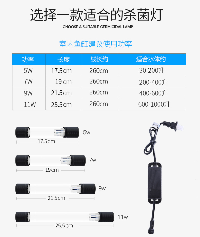 Qianhu Флагманский магазин Аквариум УФ-лампа Дайвинг Бермицидная лампа Рыбный пруд УФ-лампа Стерилизационная лампа Удаление аквариумных водорослей Очистка воды