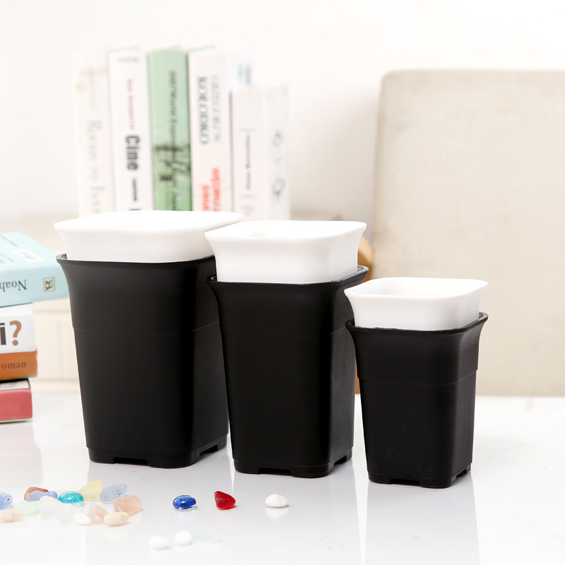 Квадратный горшок Vientiane с высокой талией матовый горшок пластиковый цветочный горшок оптом горшок для суккулентов черный белый маленький размер