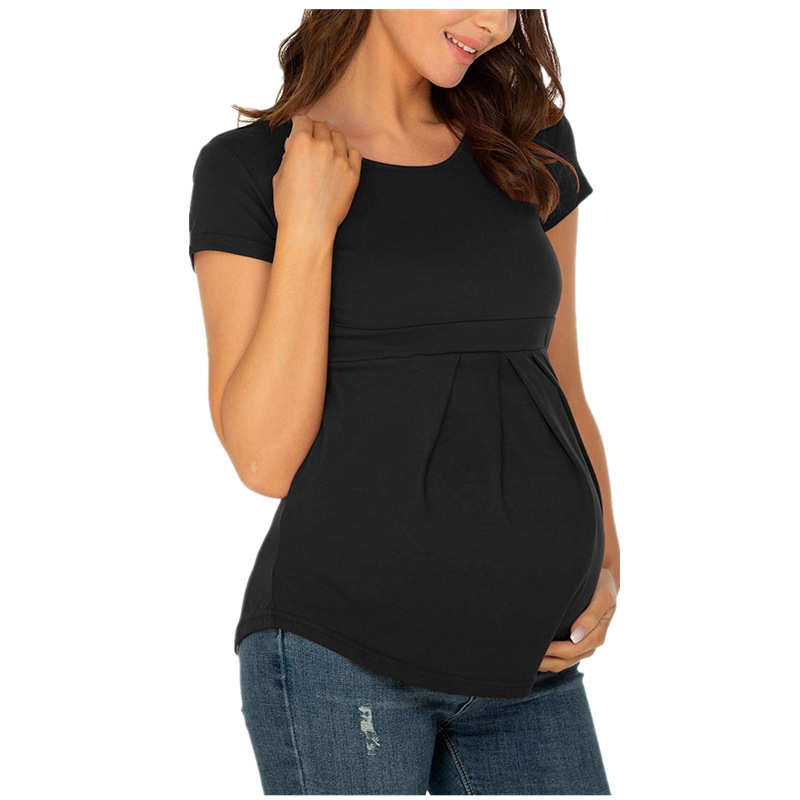 2023 Женские топы для беременных Amazon AliExpress с короткими рукавами и рюшами, плиссированные топы для беременных 1565 #