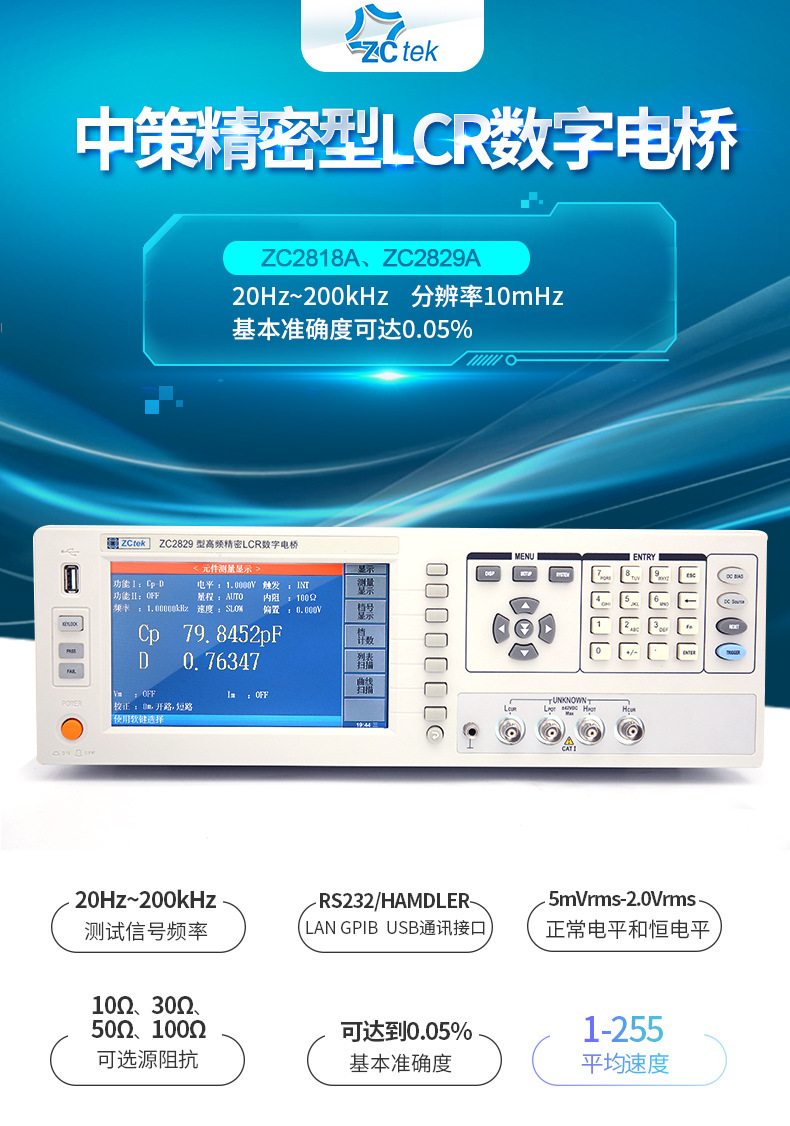 Цифровой мост ZCtek Zhongyi ZC2818A LCR ZC2829A, высокоточная частота тестирования 300/500 кГц