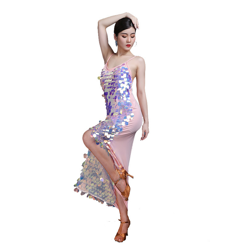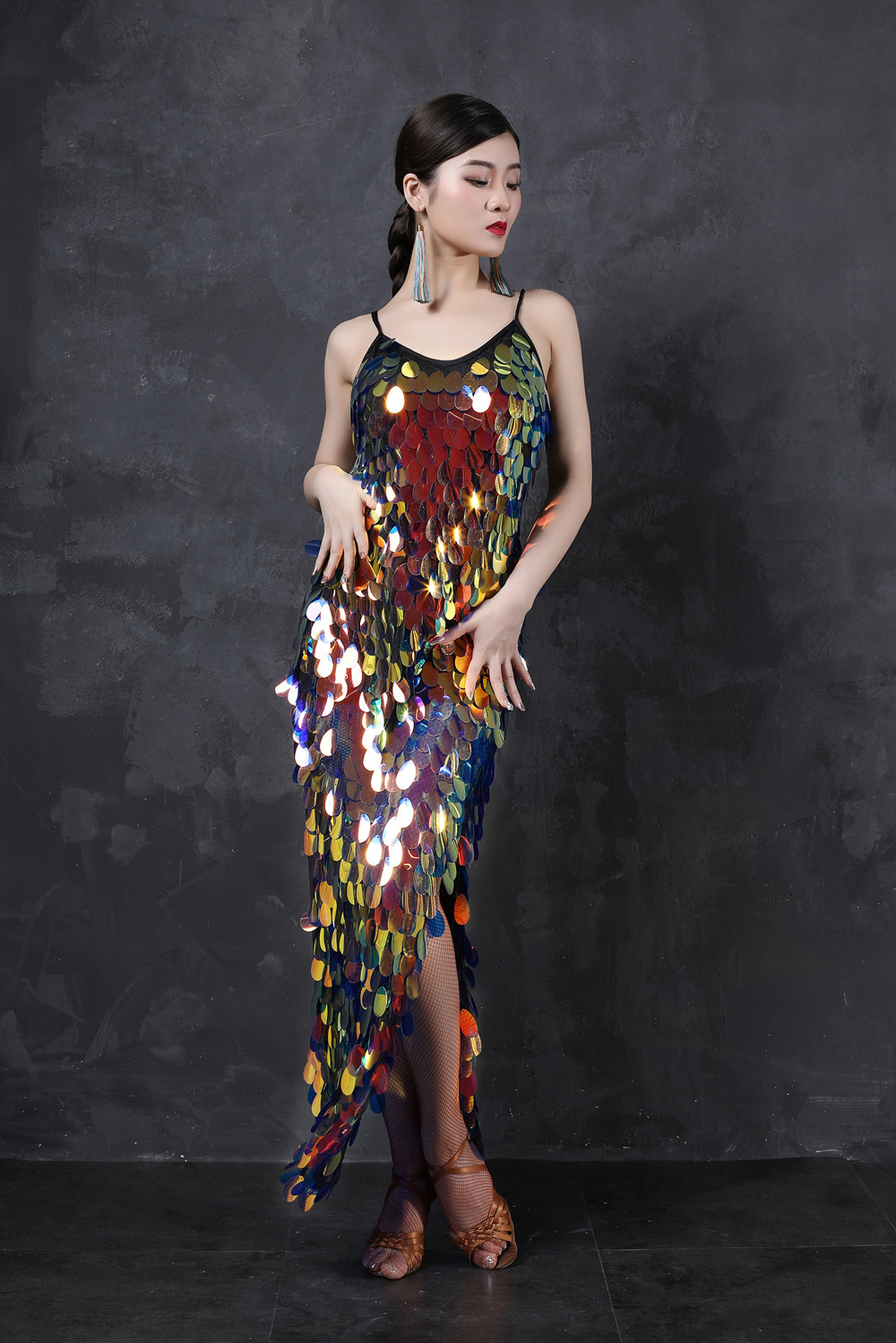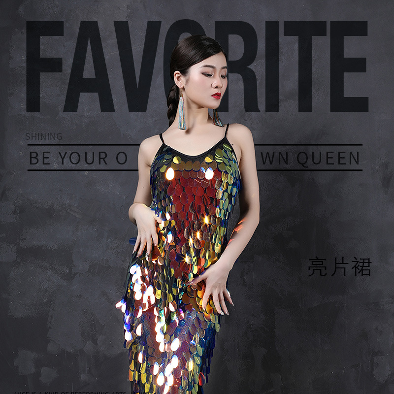 Костюм для танца живота и латиноамериканских танцев для женщин, комбинезон с пайетками в стиле русалки, комплект для выступлений с длинной юбкой, блестящая сетка