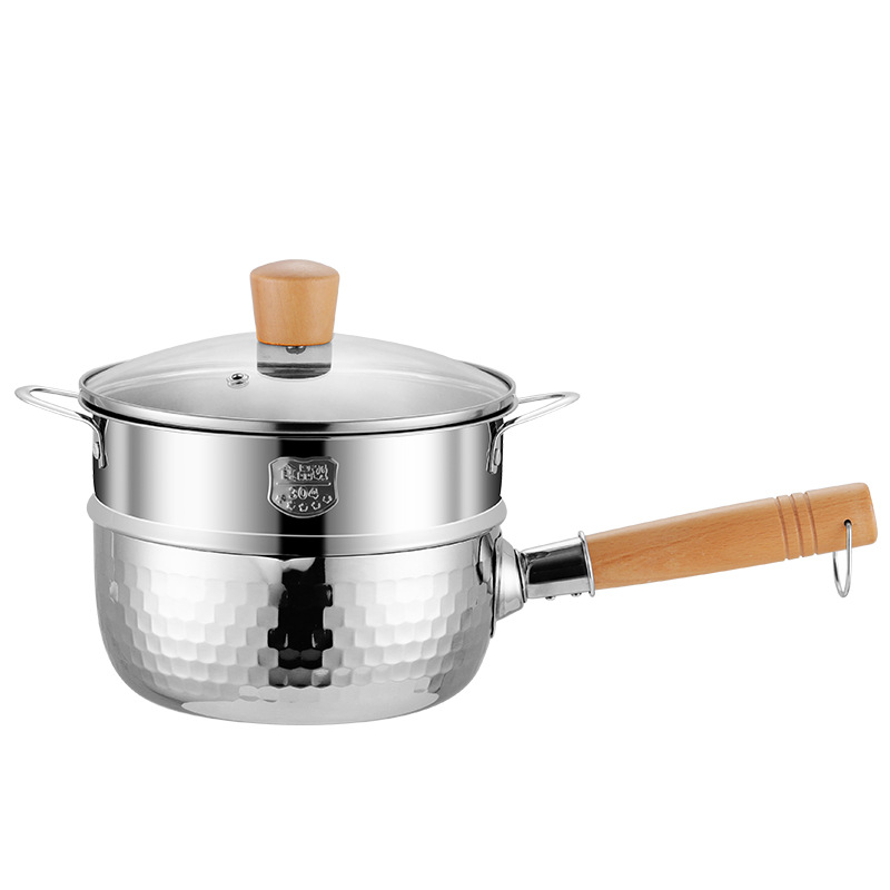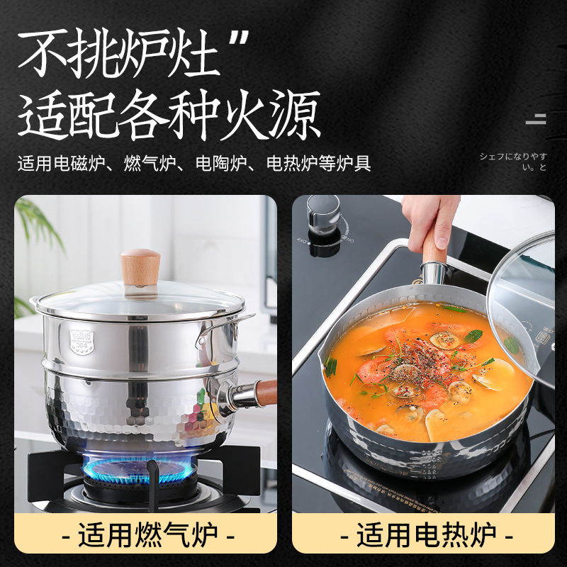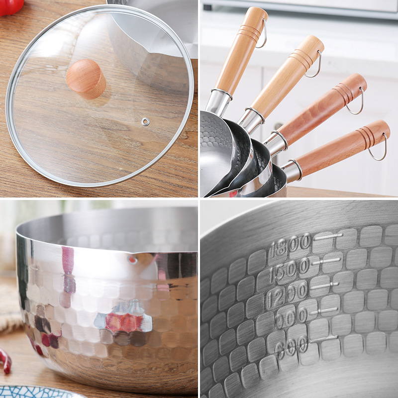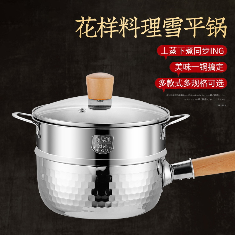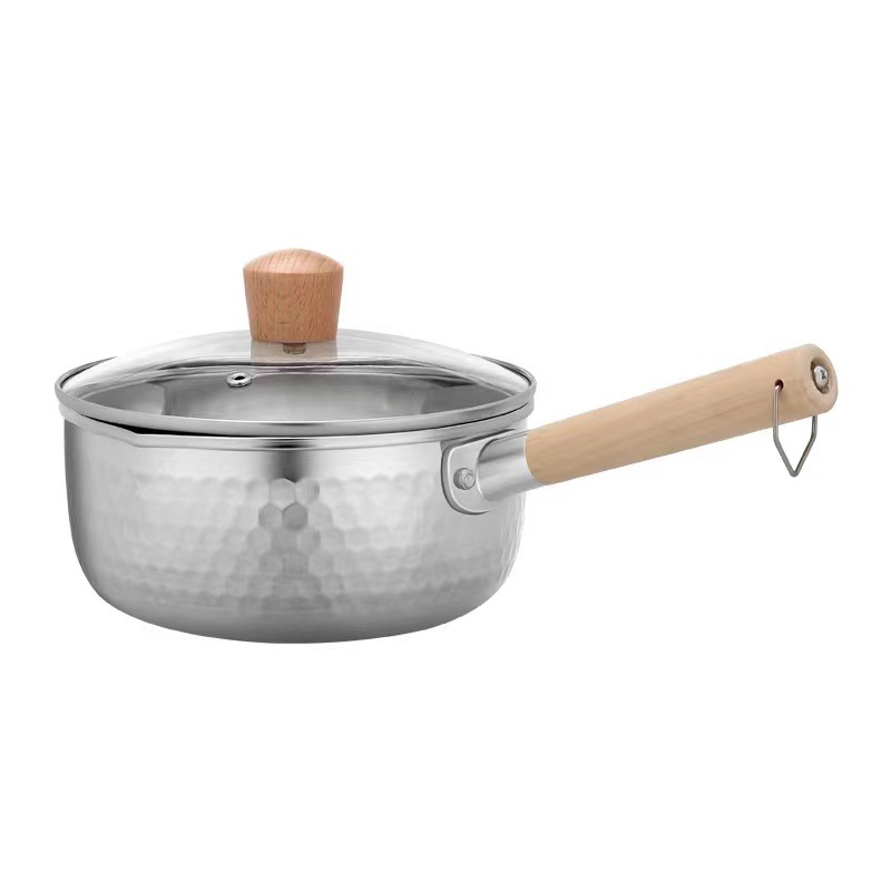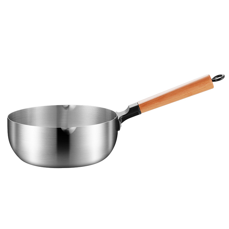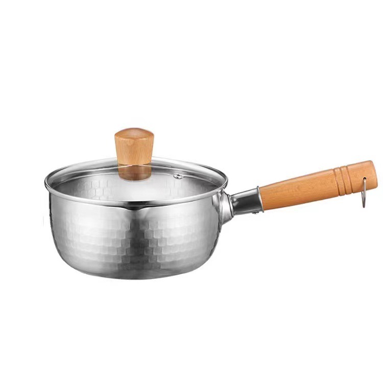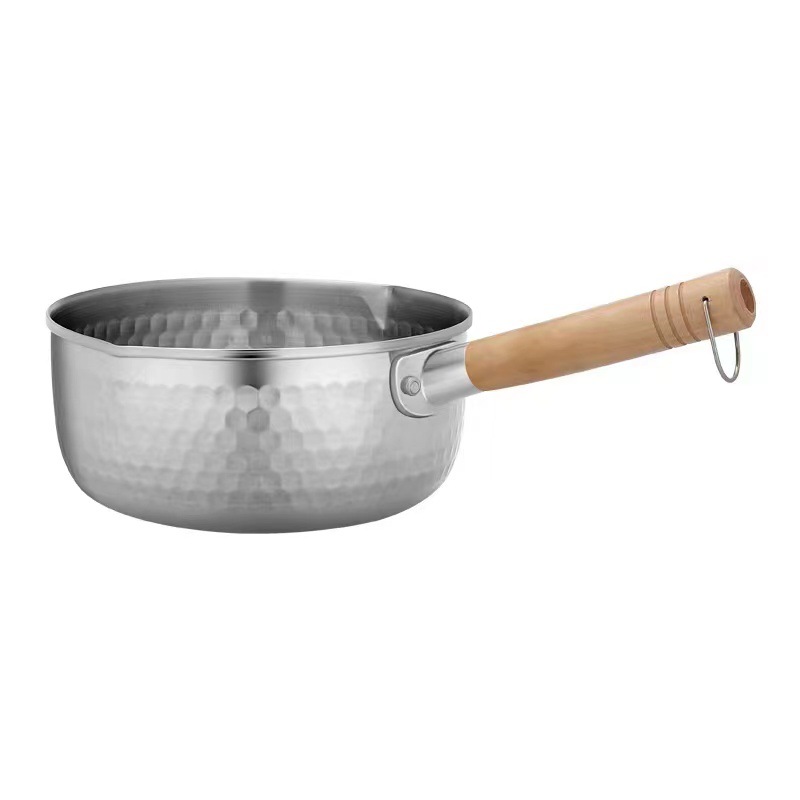 Фабричная прямая партия Снежная сковорода японский 304 нержавеющая сталь рисунок молотка деревянная ручка многоцелевой суп молочный горшок для лапши быстрого приготовления горшок для пищевой добавки