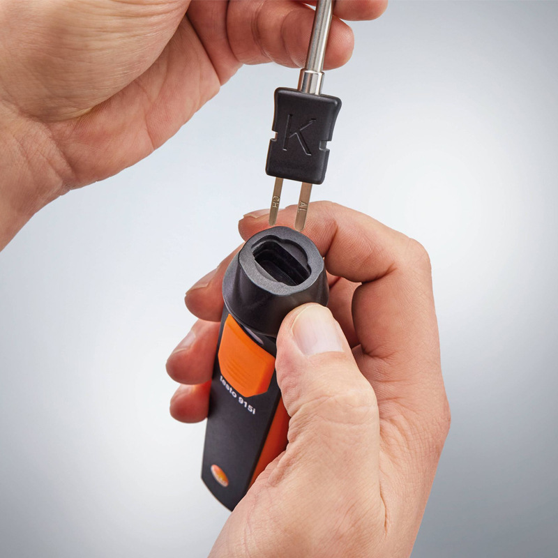Lockable connection to 4 standard probes testo 915i; Standard plug-in connection to other common TC probes |