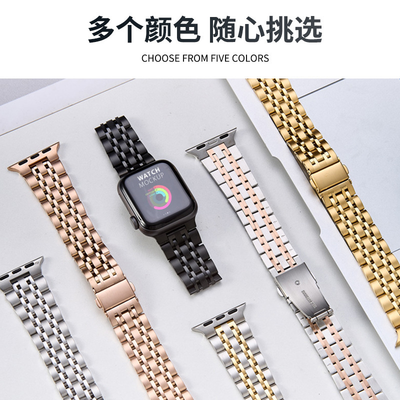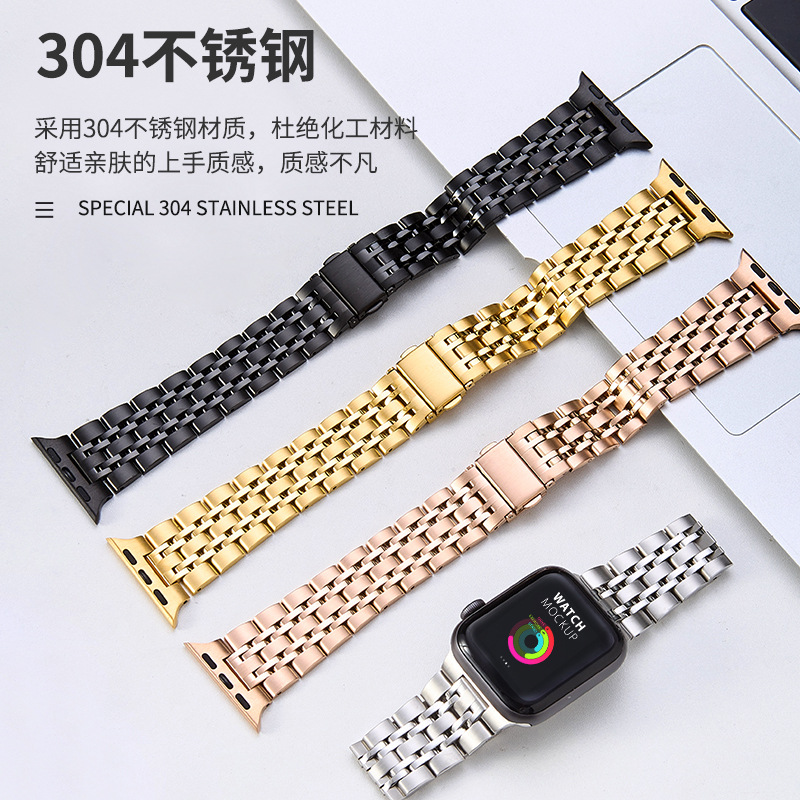 Подходит для Apple iwatch Seven Beads ремешок из нержавеющей стали iwatch Спортивная цепочка Цельный металлический ремешок для часов