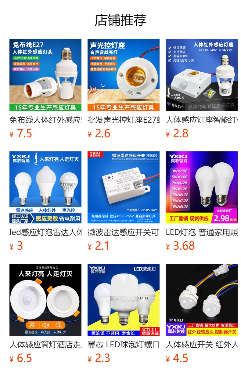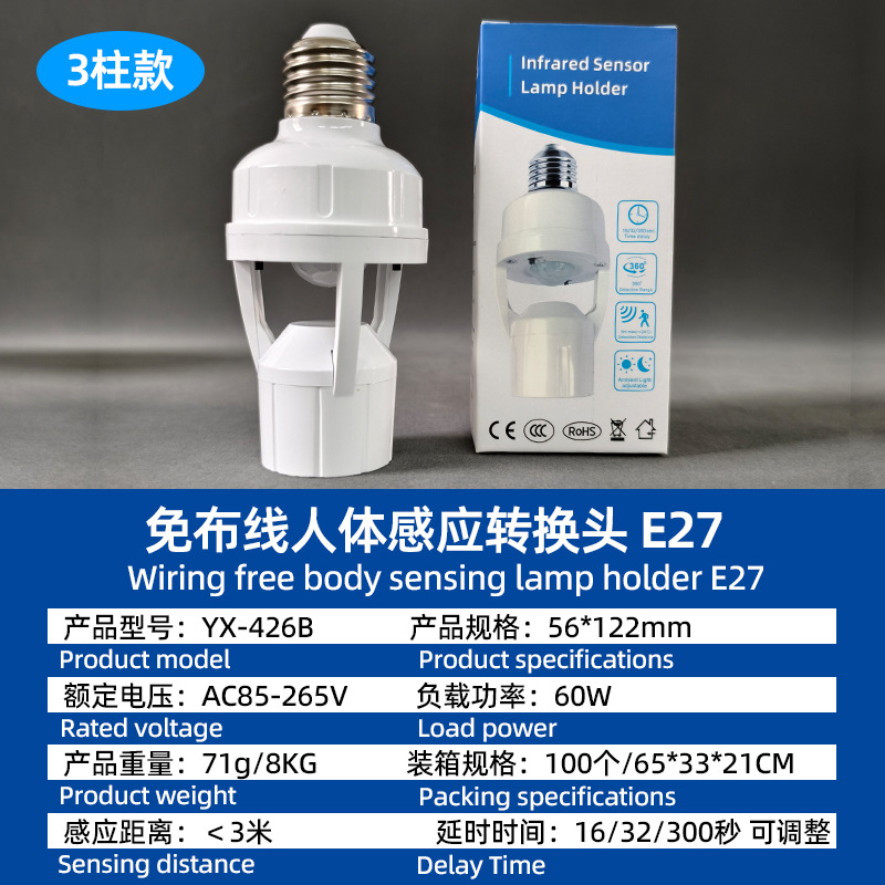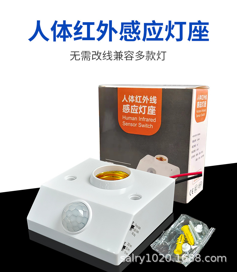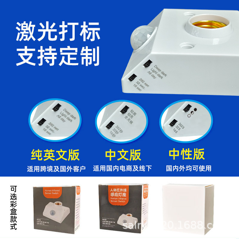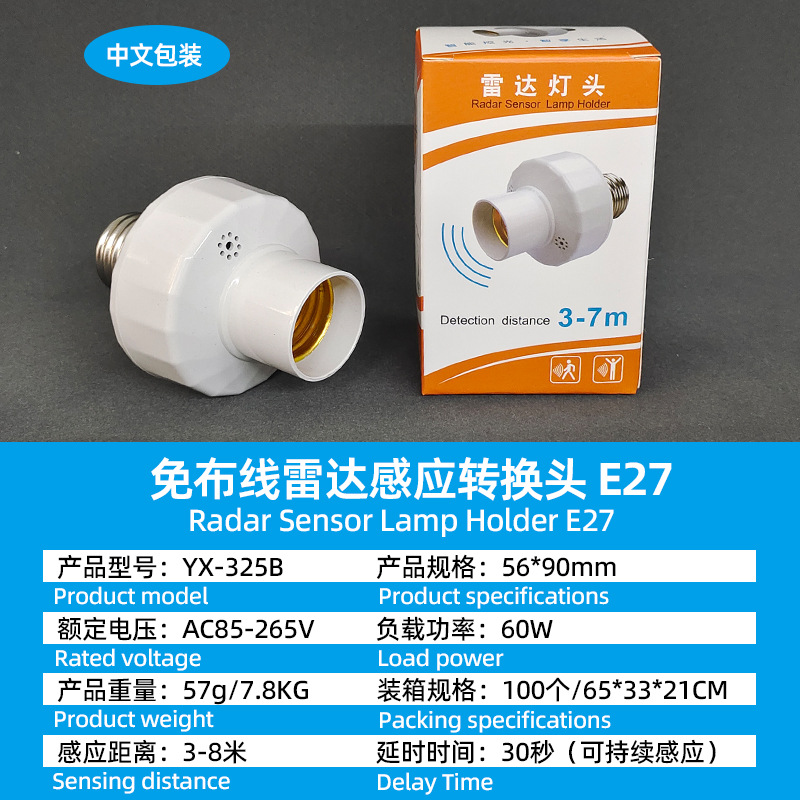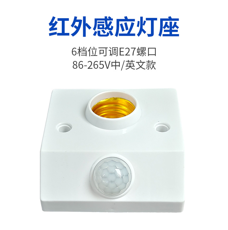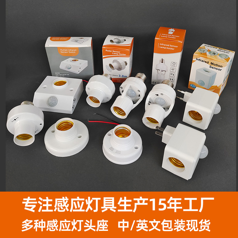 Патрон лампы инфракрасного датчика человеческого тела типа 86, E27 (регулируемый на английском языке); Патрон лампы инфракрасного датчика человеческого тела типа 86, E27 (регулируемый китайский); Патрон лампы с радарным датчиком E27 Английская модель; Патрон лампы с радарным датчиком E27 Китайская модель; 3-колонный адаптер датчика человеческого тела, регулируемый переключатель обновления модели; Патрон лампы с дистанционным управлением + пульт на английском языке; Регулируемый держатель лампы для преобразования датчика человеческого тела с 2 контактами; Регулируемый тип ручки адаптера датчика человеческого тела; Патрон лампы управления звуком и светом Е27; Обычный патрон лампы Е27 (без датчика)