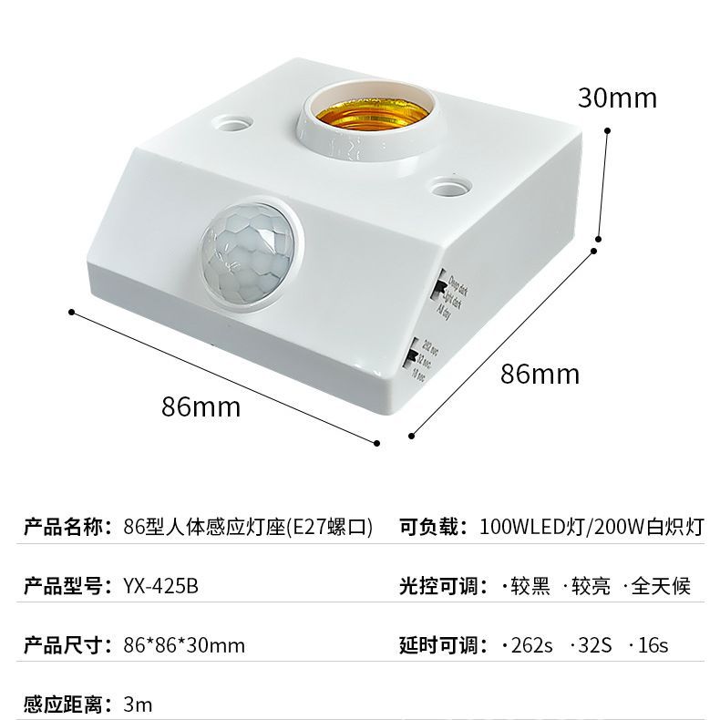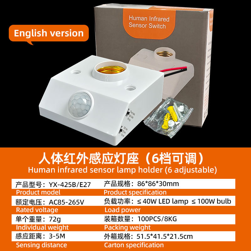 Держатель лампы индукции человеческого тела Регулируемая интеллектуальная задержка E27 винт 86 светодиодная инфракрасная лампа открывается оптом