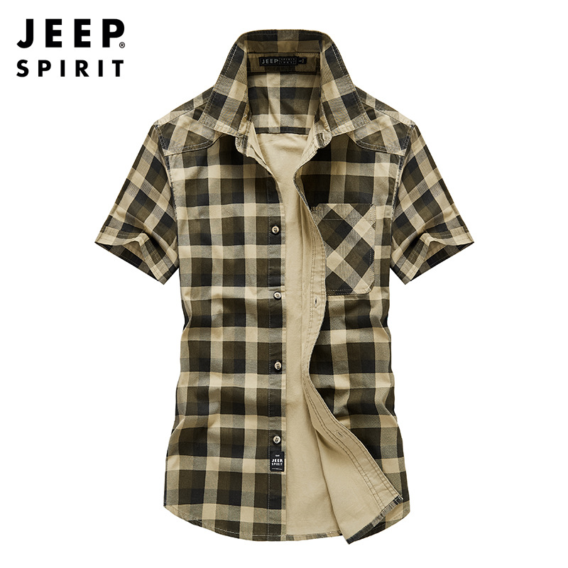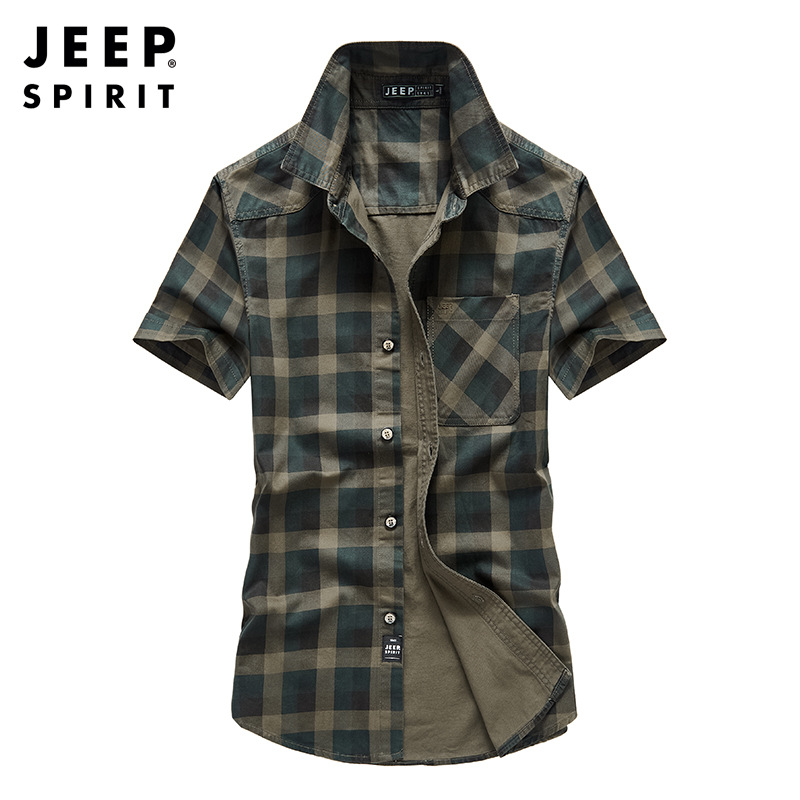 JEEP SPIRIT мужская летняя новая деловая Повседневная хлопковая клетчатая рубашка с коротким рукавом, топ, мужская рубашка 5385