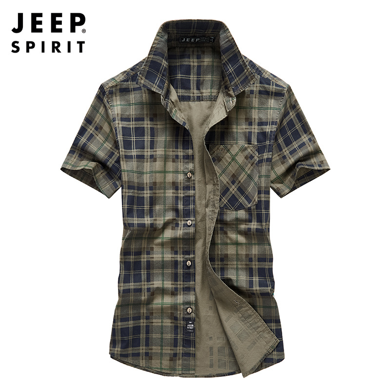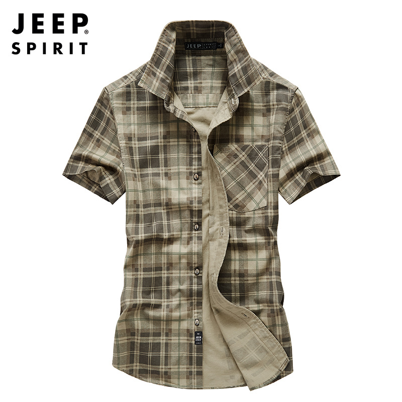 JEEP SPIRIT мужская летняя деловая Повседневная модная клетчатая рубашка с короткими рукавами Мужская рубашка больших размеров 5387