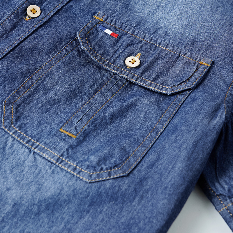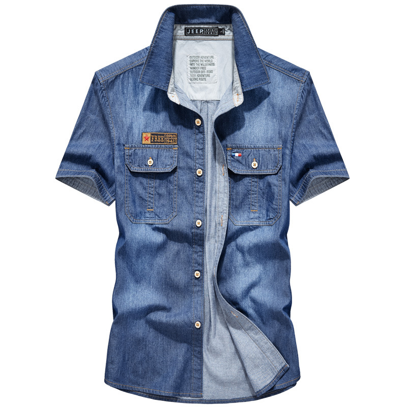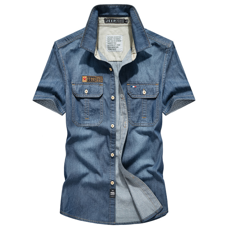 JEEP SPIRIT Мужская джинсовая рубашка мужская Повседневная рубашка с короткими Рукавами Летняя тонкая дюймовая рубашка 022