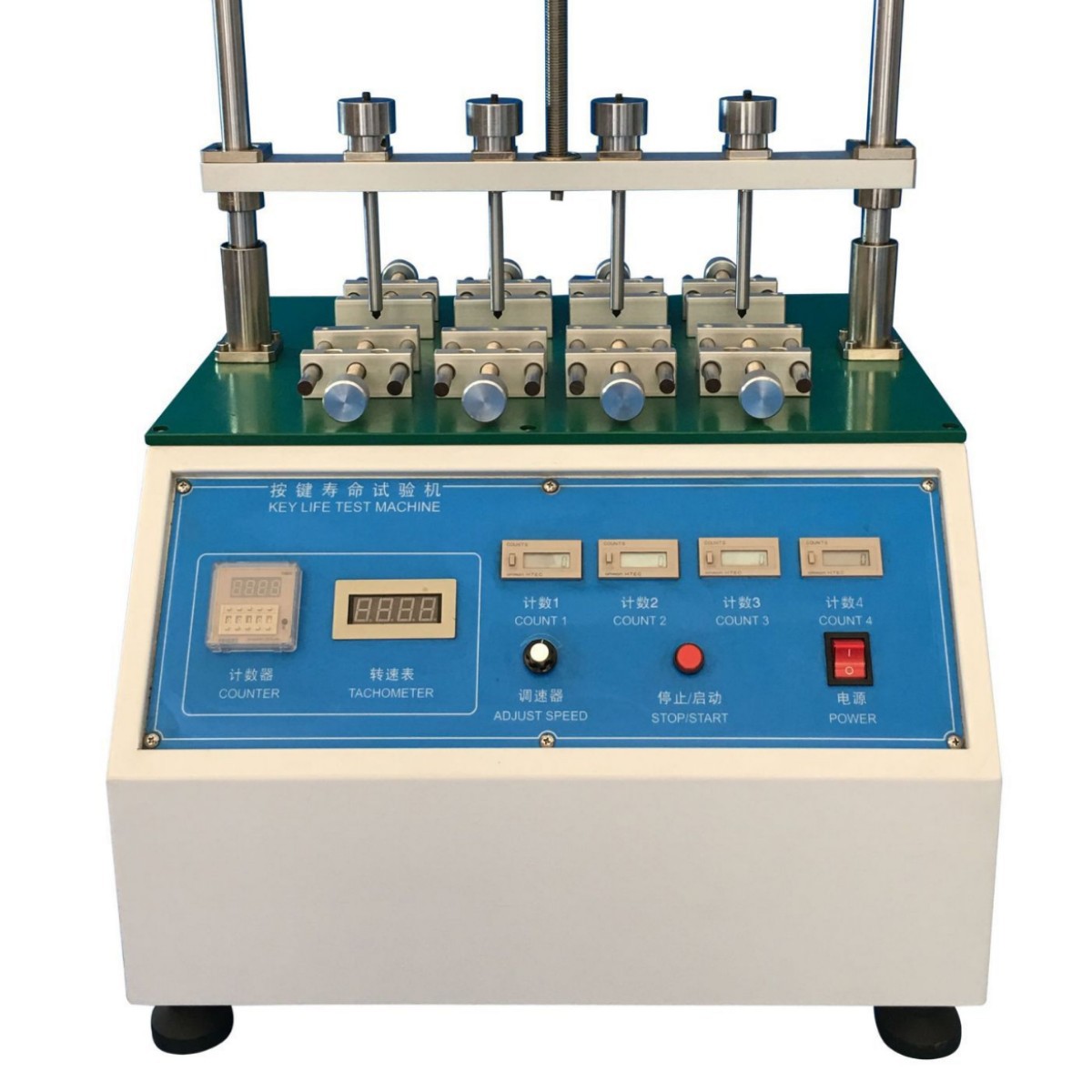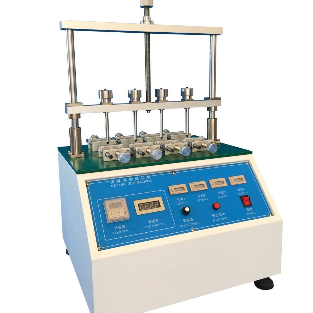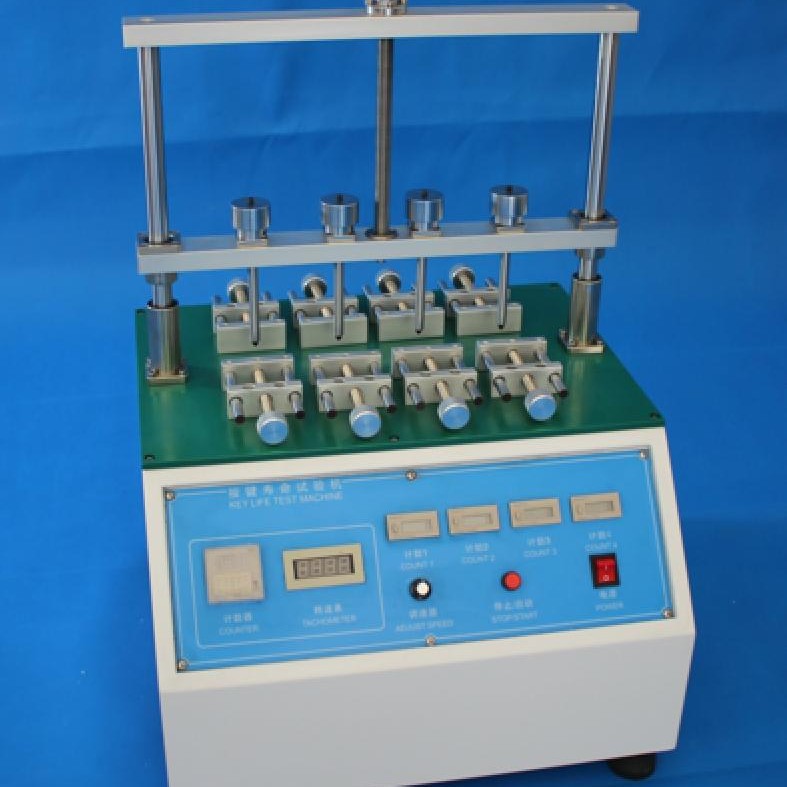 按键寿命试验机:适用于手机、电脑、电子词典、蓝牙耳机、车载播放器、摇控器按键、车辆防盗器、传真机按键、MP5、MP4、MP3、按键开关、轻触开关、薄膜按键、橡胶按键、硅胶按键等各类按键进行寿命试验。