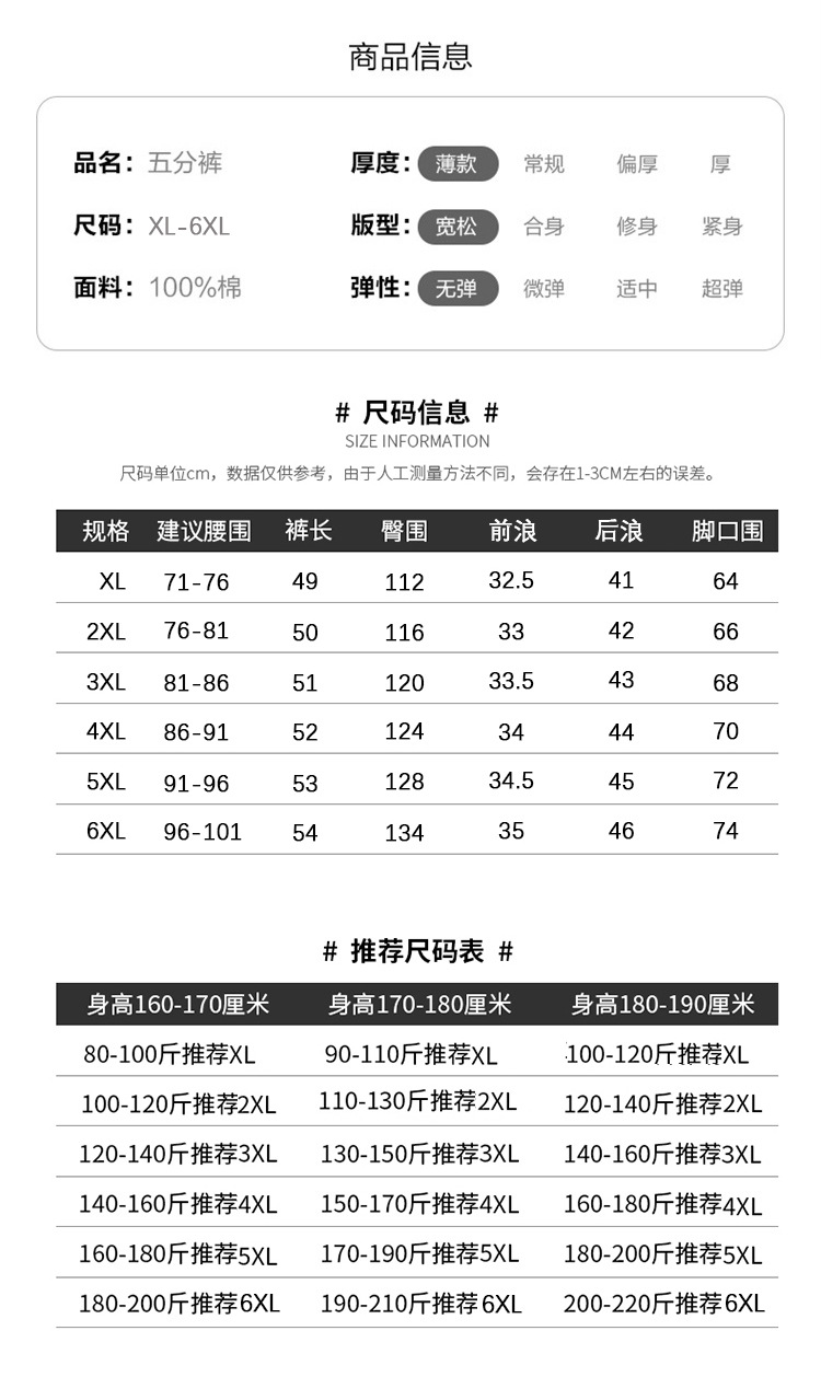 XL; 2XL; 3XL; 4XL; 5XL; 6XL