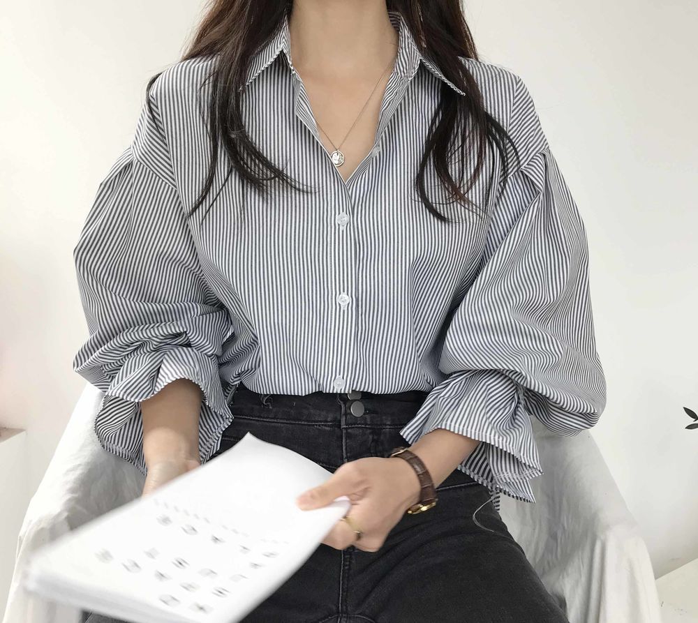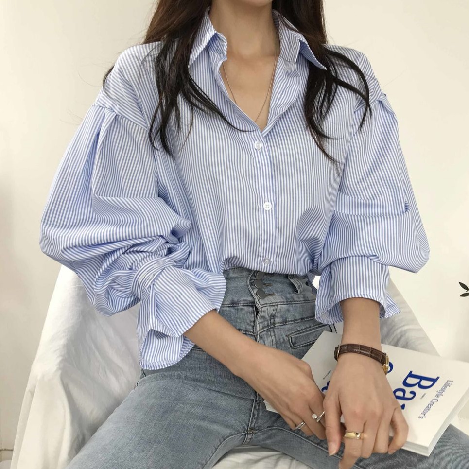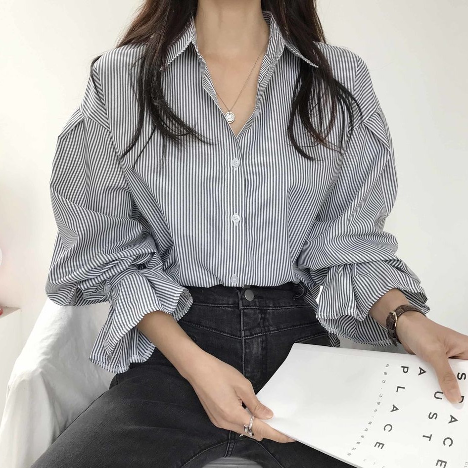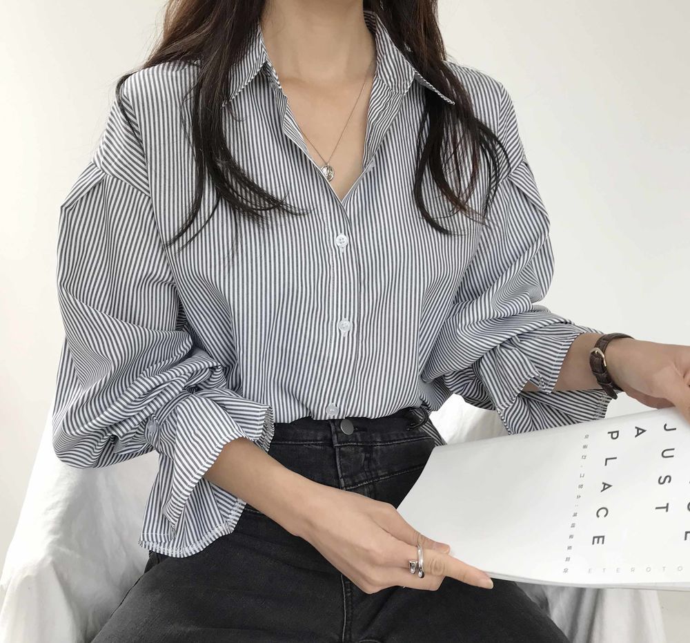 Дизайнерская свободная рубашка в тонкую полоску для женщин, простой внутренний топ с длинными рукавами