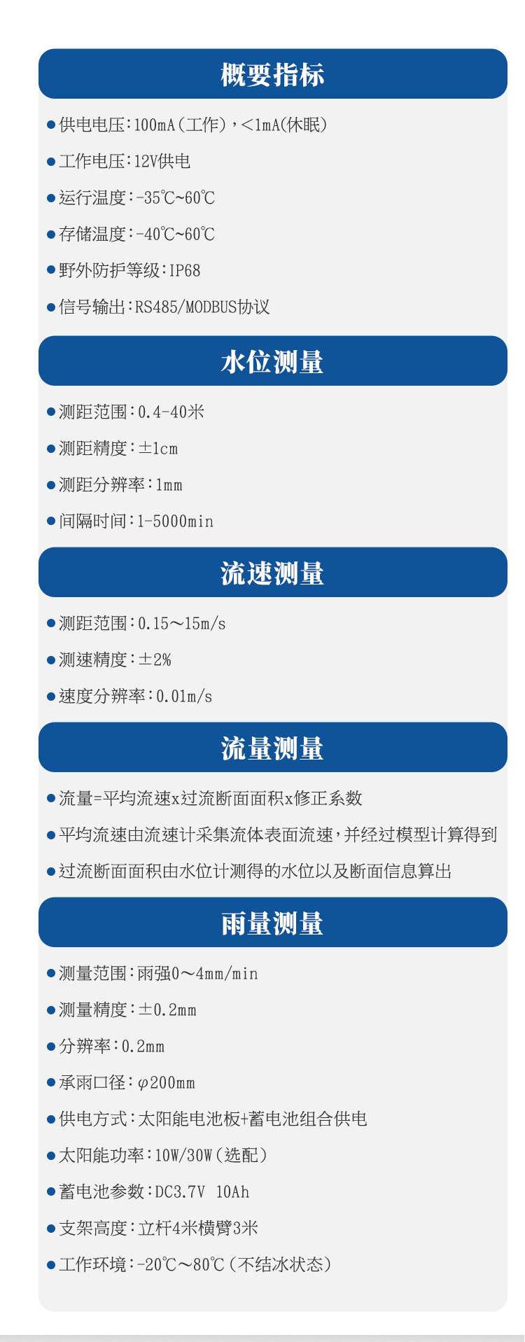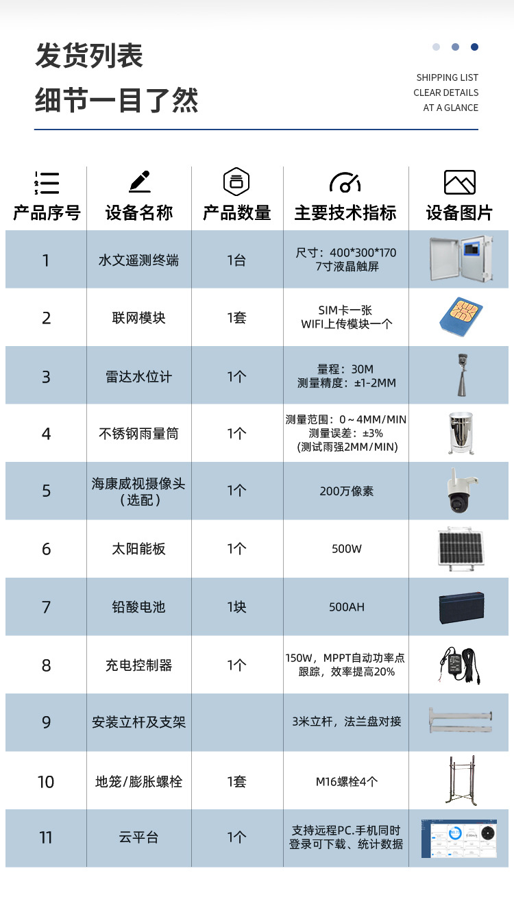 Станция контроля уровня воды; Станция контроля дождя уровня воды; Станция контроля расхода уровня воды дождя; Станция контроля дождя с откидным ведром; Датчик дождя с откидным ведром YL1; Радарный измеритель уровня воды/измеритель уровня жидкости YW-26A; Радарный расходомер L3; Станция мониторинга гидрологической среды Beidou JD-SW4