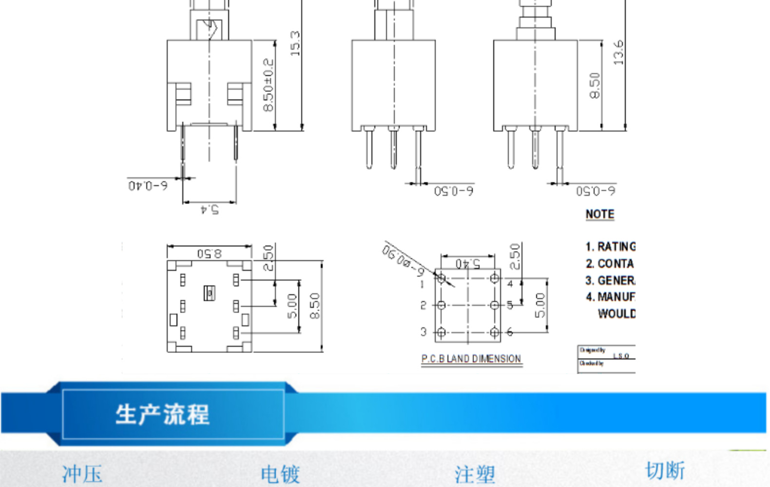Двухрядный самоблокирующийся переключатель 8,5x8,5 Двухрядный переключатель звука без блокировки 8,5x8,5 безблокировочный звук