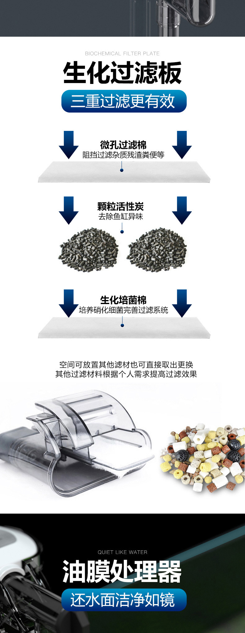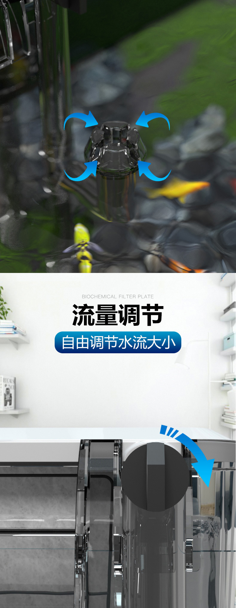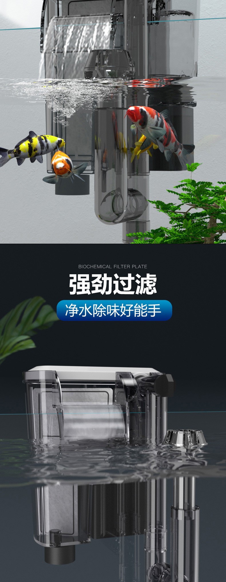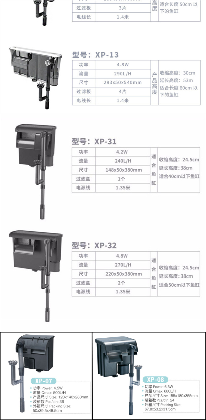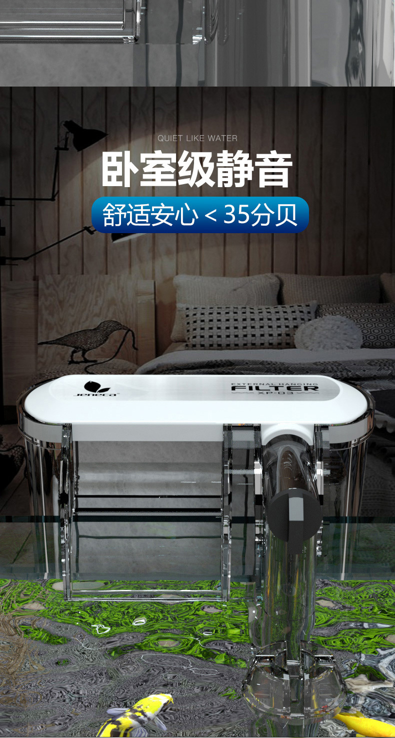 适用于各种水族箱,生态缸的水循环,生化过滤净水质并增加水中氧份。