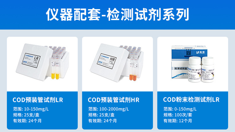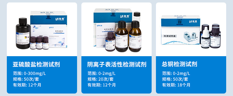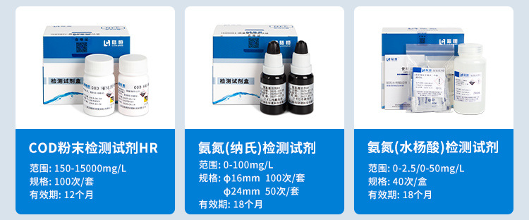 Реагент для определения остаточного хлора 0-3 (100 шт./набор); Реагент для определения остаточного хлора 0-12 (100 шт./набор); Общий реагент для хлора 0-3 (100 штук/набор); Общий реагент для хлора 0-12 (100 штук/набор); Реагент диоксид хлора (100 применений/набор); Озоновый реагент, 100 шт./набор; ЗПК сборная трубка 10-150мг/л LR; СКБ сборная трубка 100-2000мг/л чР; Порошковый реагент COD LR; Порошковый реагент COD HR; Реагент аммиачного азота (Несселя); Реагент аммиачного азота (салициловая кислота); Реагент для обнаружения общего фосфора; Общий азотный реагент; Общий медный реагент; Общий никелевый реагент; Общий мanganовый реагент; Общий хромовый реагент; Общий цинковый реагент; Алюминиевый реагент; Общий железный реагент; цианидный реагент; Фторидный реагент; реагент PH; Одна пустая пробирка для пищеварения