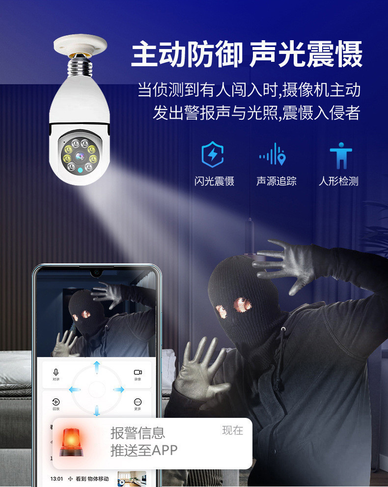Домашняя камера-лампочка, не требующая проводки, камера с ночным видением, цоколь E27, 360-градусный мониторинг без слепых зон, интеллектуальный широкоугольный обзор.