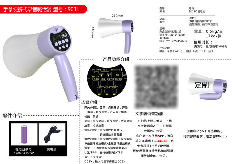 Мощный портативный громкоговоритель с литиевой батареей, громкоговоритель, языковой перевод, пропагандистский громкоговоритель