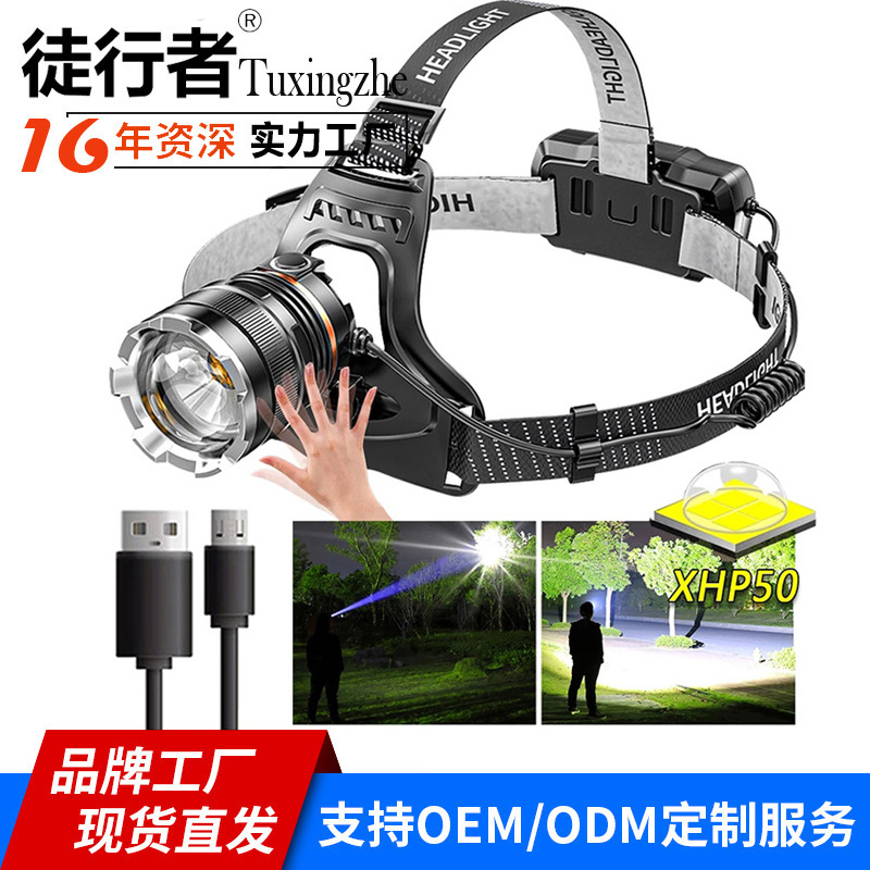 Трансграничные фары яркий Перезаряжаемый головной фонарик P50 наружная ночная рыбалка длительное наружное освещение