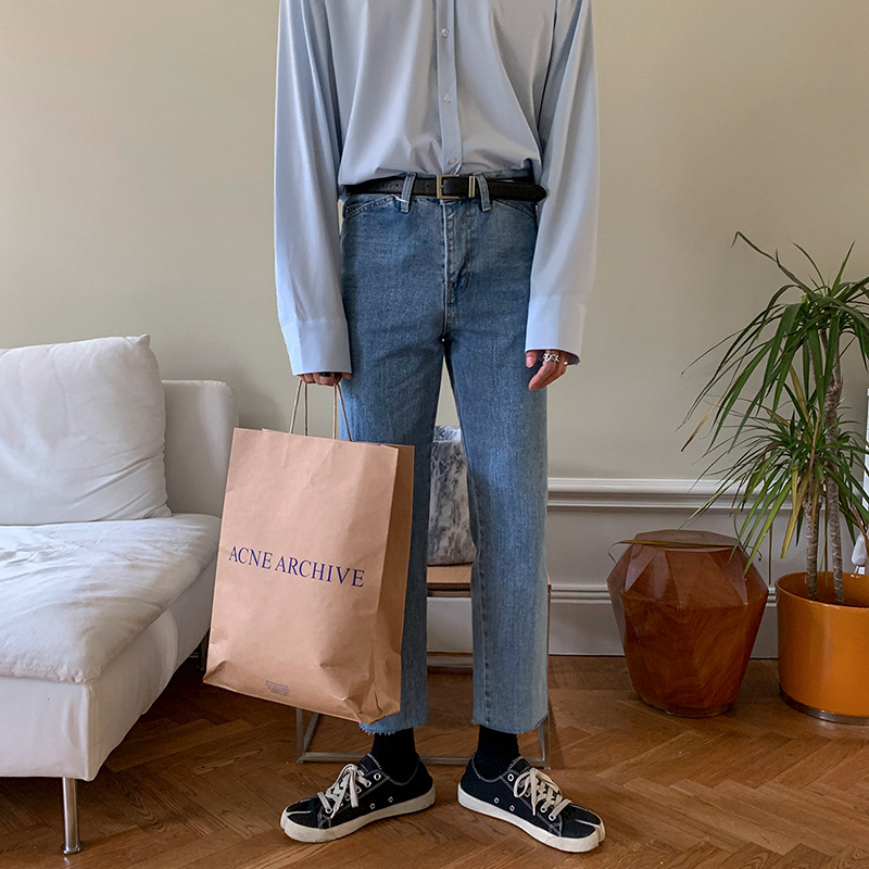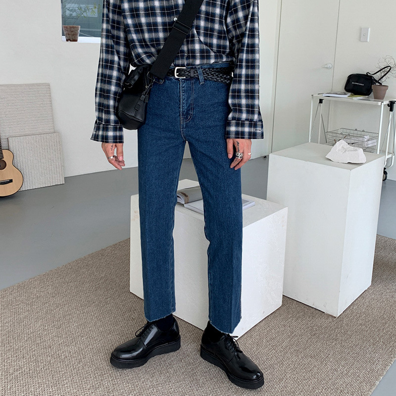 Мужские Модные джинсы MYQ в Корейском стиле на весну и осень, облегающие повседневные универсальные укороченные брюки для мужчин