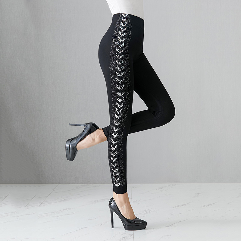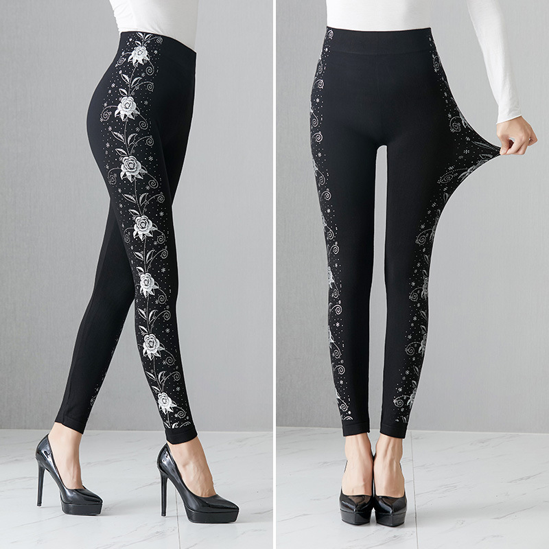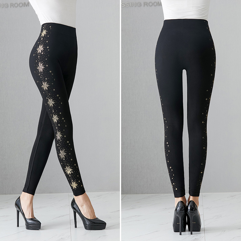 Весна и Осень средний и пожилой модальский принт леггинсы женские тонкая талия плюс размер бесшовные позолоченные брюки с высокой упругостью