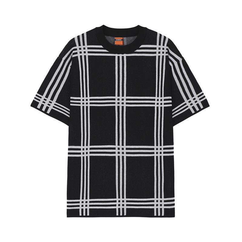 Мужской летний свитер MYQ с короткими рукавами, модная свободная футболка в Корейском стиле с коротким рукавом, Мужской Топ в клетку из ледяного шелка