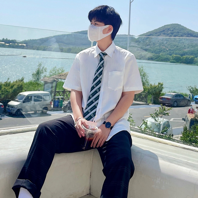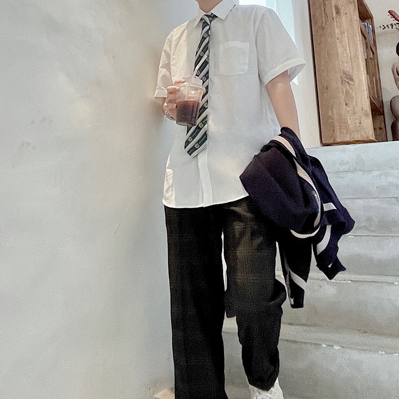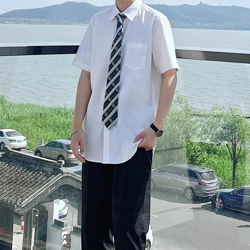 Белая рубашка, мужская летняя белая Модная рубашка с короткими рукавами и длинными рукавами, свободная Мужская рубашка больших размеров в японском студенческом стиле DK