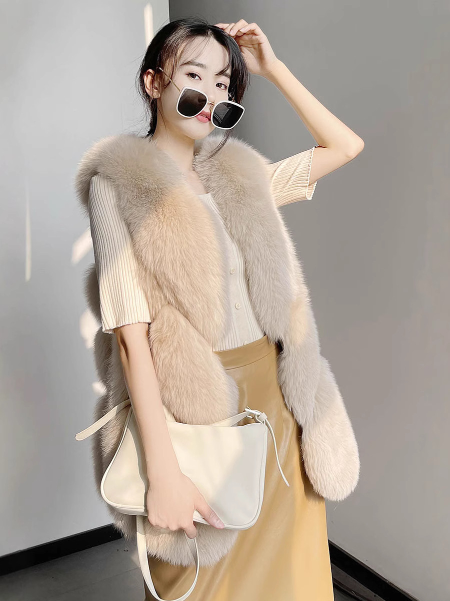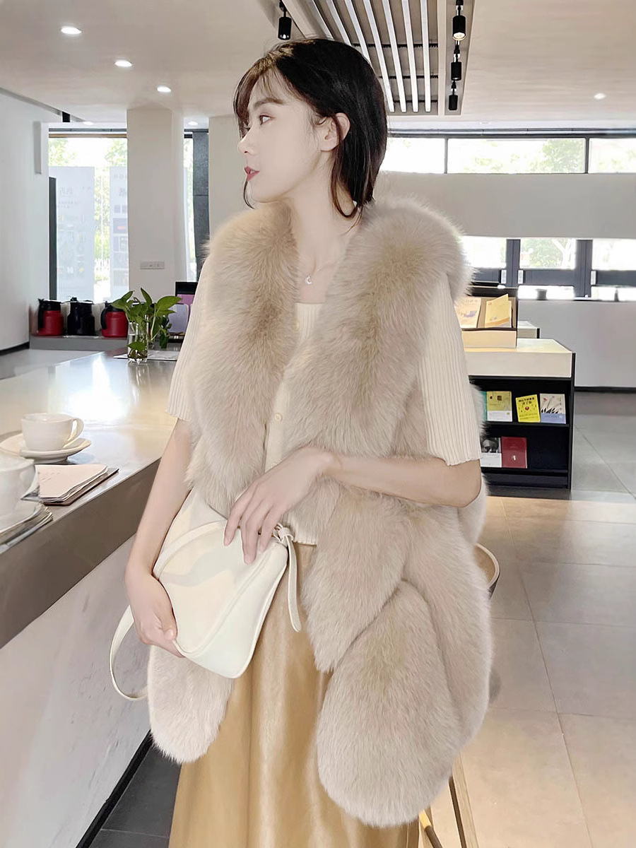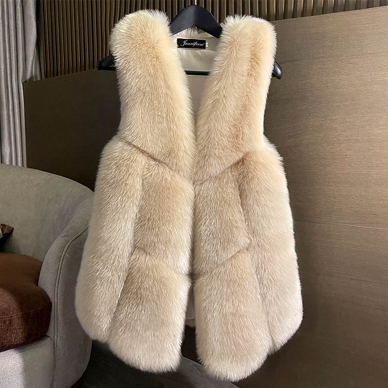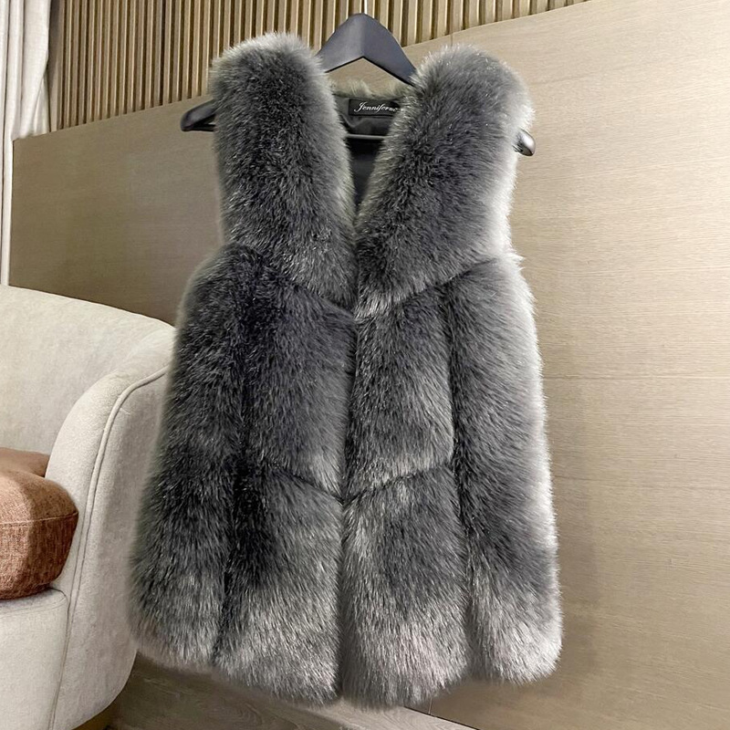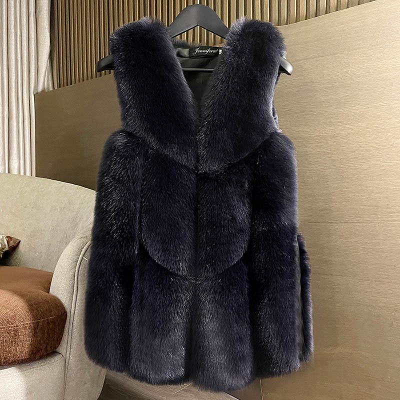Производители меха оптом 2023 осень и зима Новый шерстяной жилет женский жилет средней длины с имитацией лисьего меха