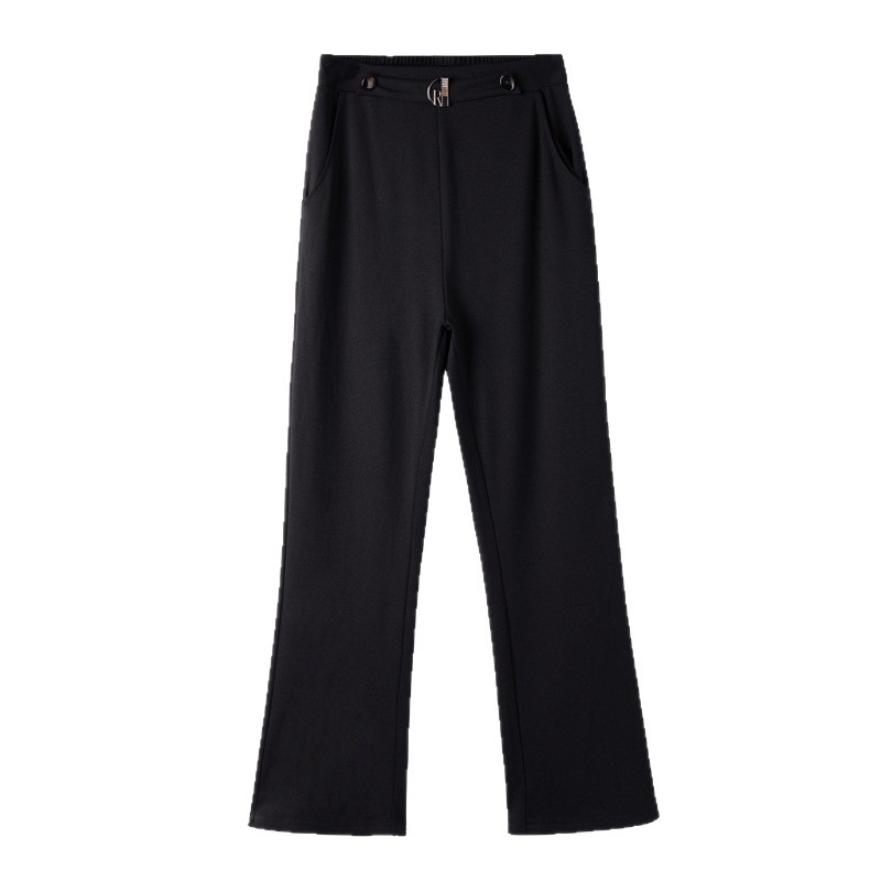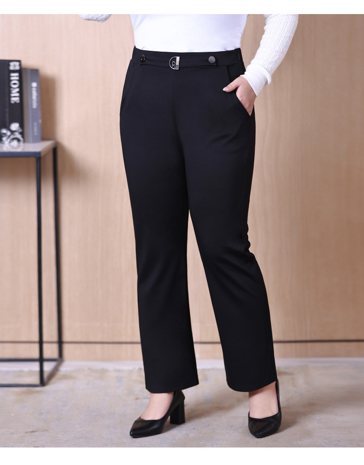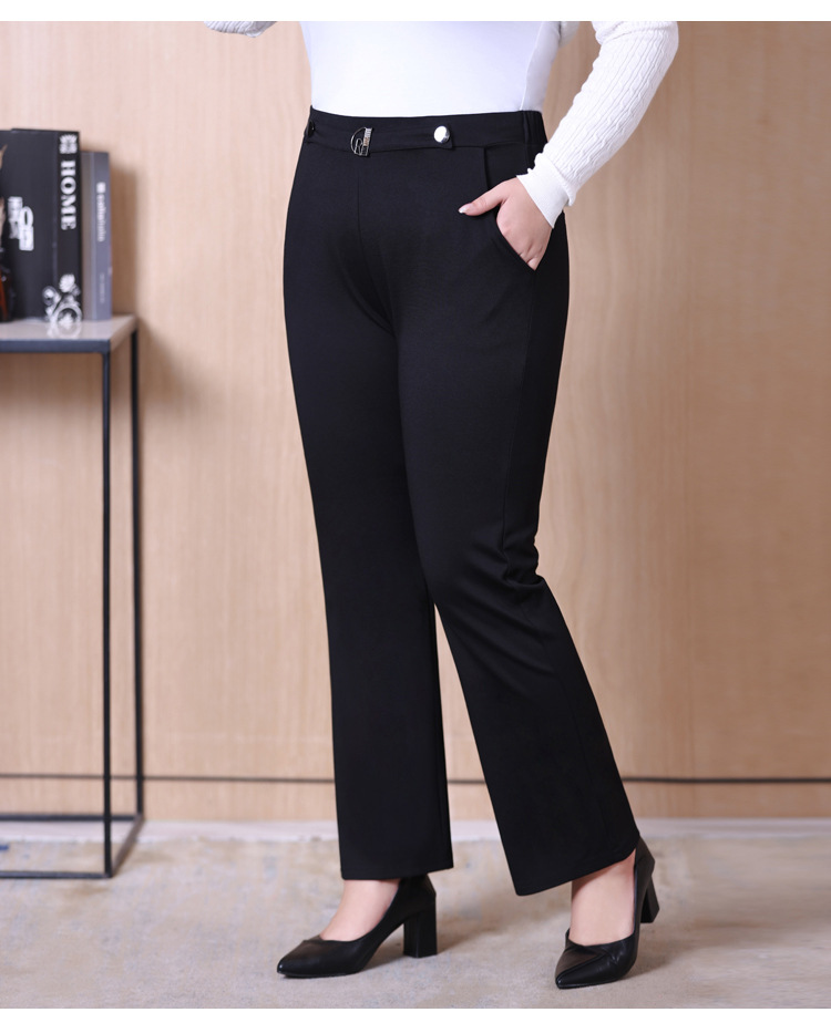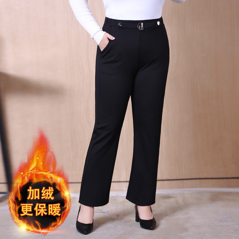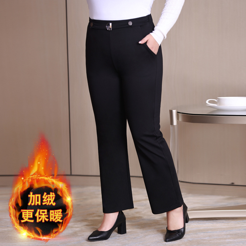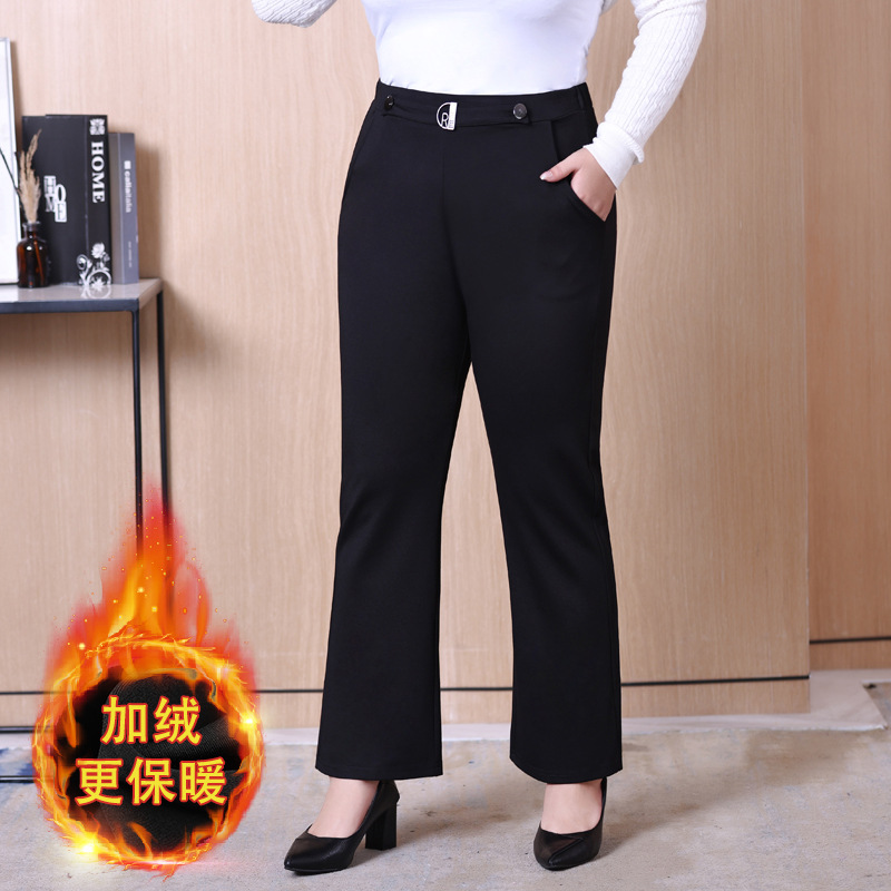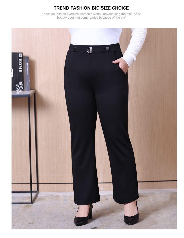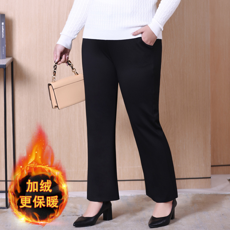 Брюки для женщин больших размеров, новые зимние повседневные брюки, свободные широкие брюки с драпировкой, облегающие черные брюки-клеш с высокой талией для полных женщин.
