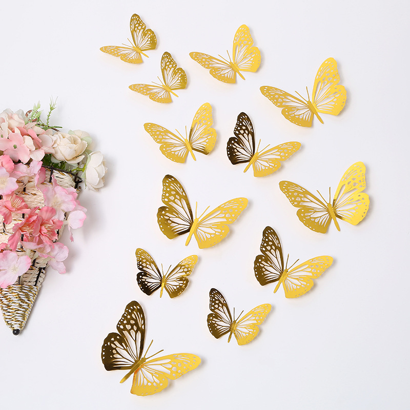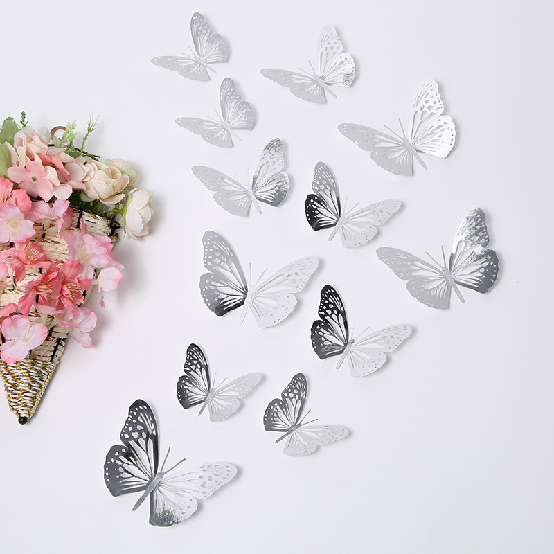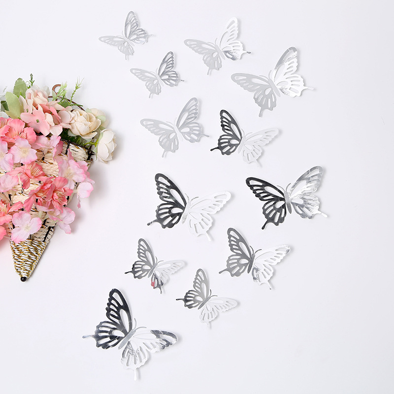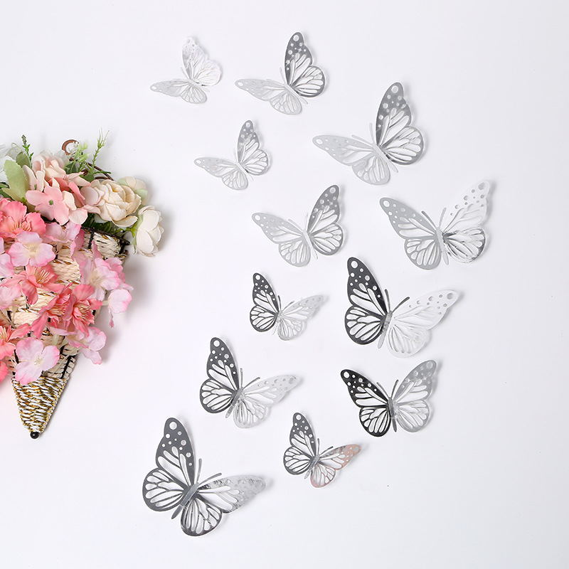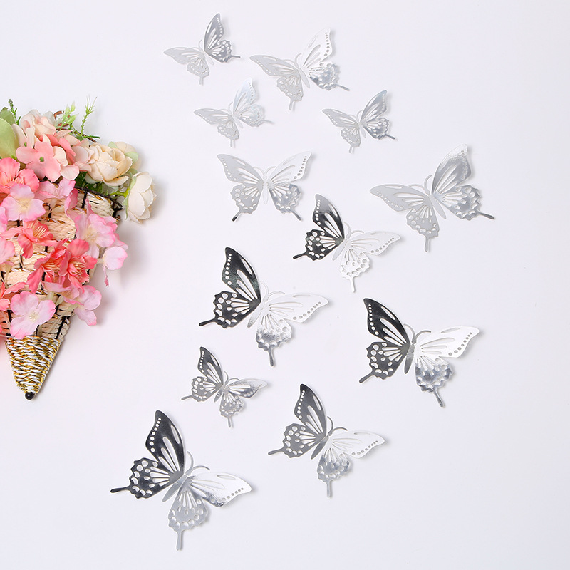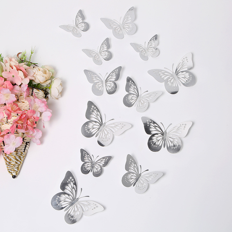 Полые бабочки настенные наклейки 3D полые Имитация металла бабочка настенные наклейки домашняя гостиная фон стены декоративные креативные наклейки
