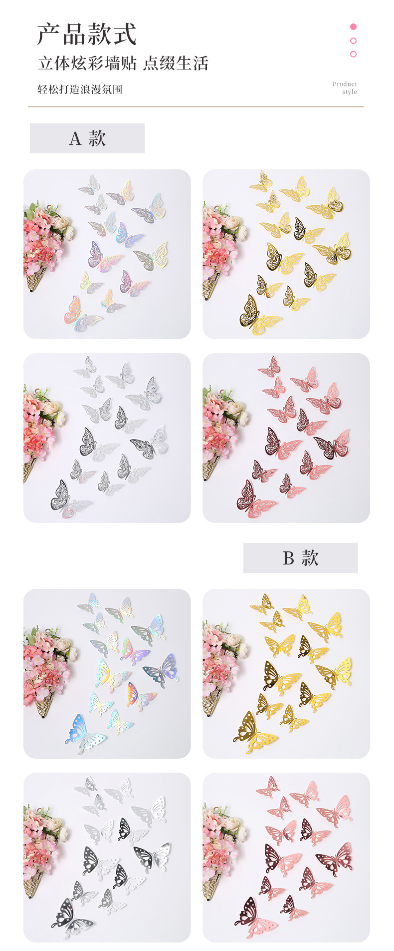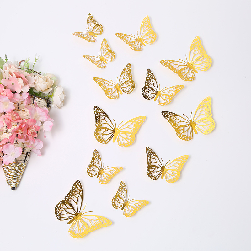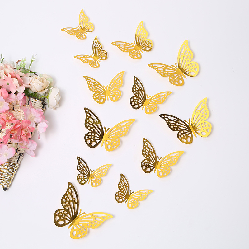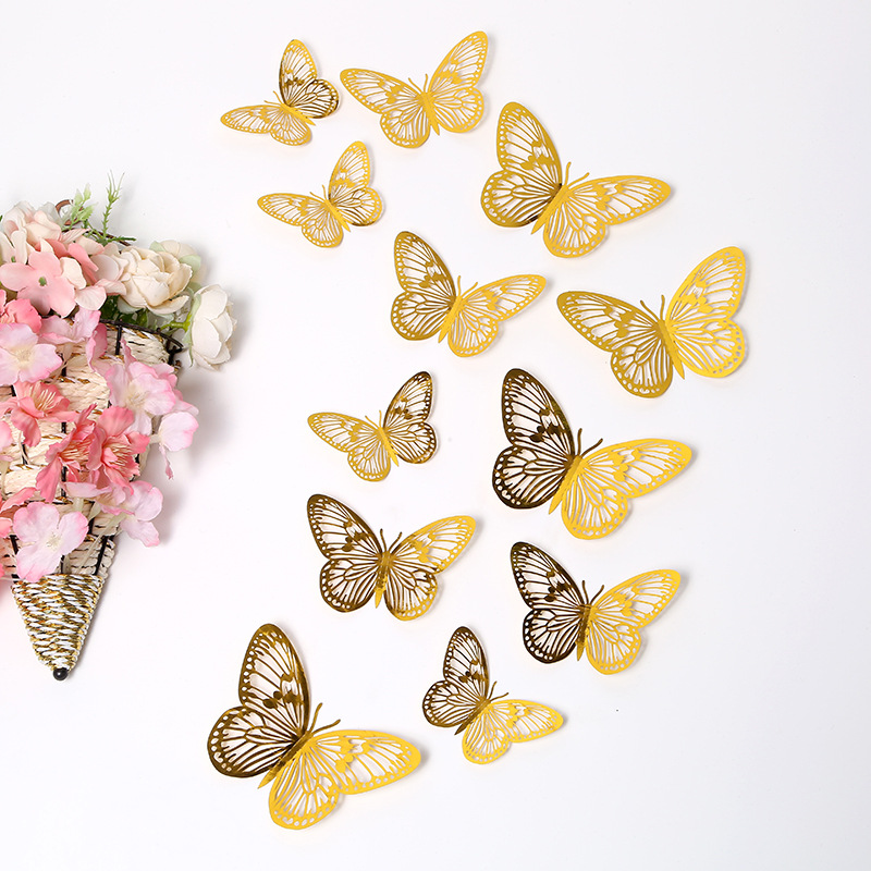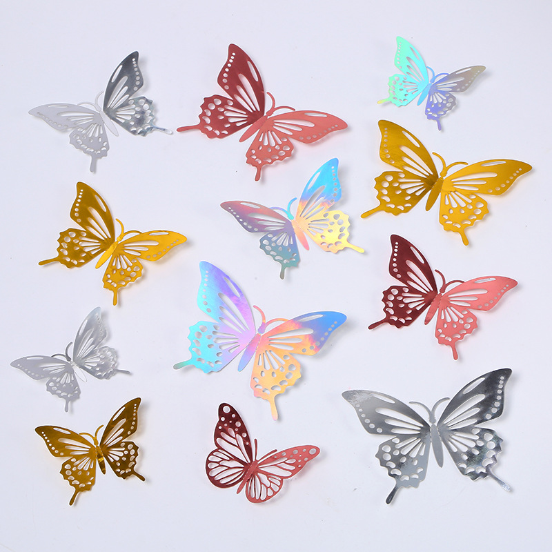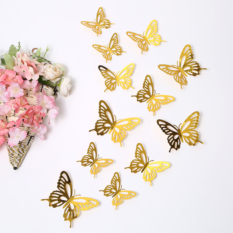 Полые бабочки настенные наклейки 3D полые Имитация металла бабочка настенные наклейки домашняя гостиная фон стены декоративные креативные наклейки