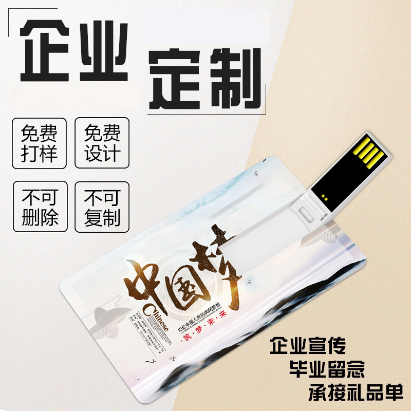 礼品U盘又称形象U盘,广告U盘,材料有金属,塑料,木质,硅胶,陶瓷等等,款式有卡片礼品U盘,卡通礼品U盘等等,名片礼品U盘由ABS材料制成,外观和标准银行卡大小无异,长宽为84*52MM,厚度为1.2-2MM。名片U盘和卡片U盘因为可以印刷各种精美彩色图案而成为优秀的广告载体。