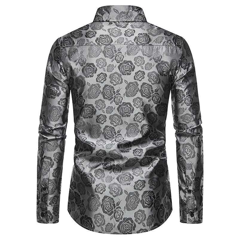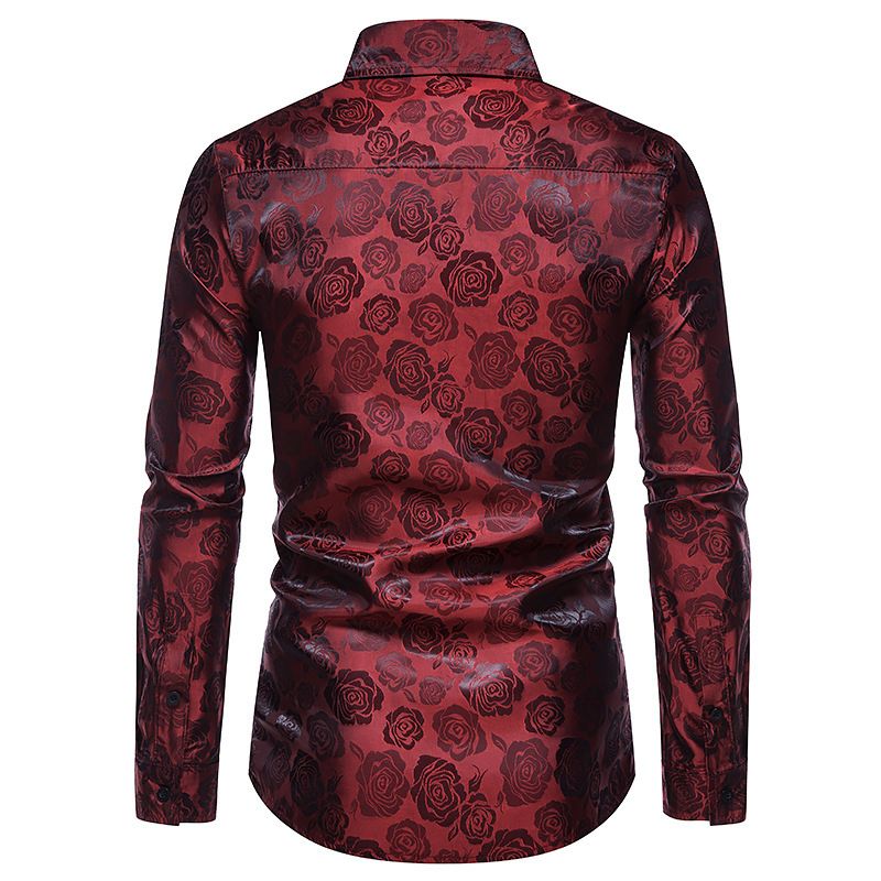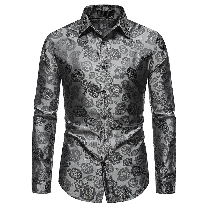 Осень 2021 Новая трансграничная Мужская модная рубашка с длинным рукавом и принтом роз, мужская повседневная тонкая рубашка для внешней торговли