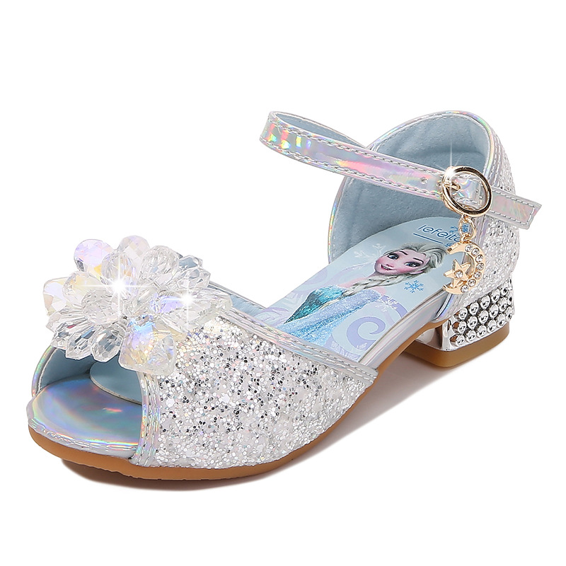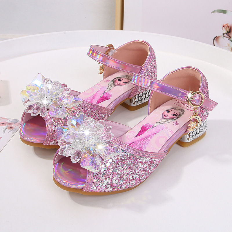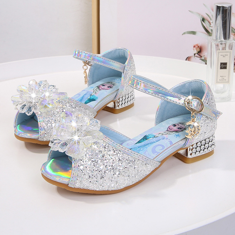 Туфли принцессы для девочек, летние детские босоножки на высоком каблуке для маленьких девочек, большие детские Нескользящие туфли на мягкой подошве, обувь Aisha Crystal