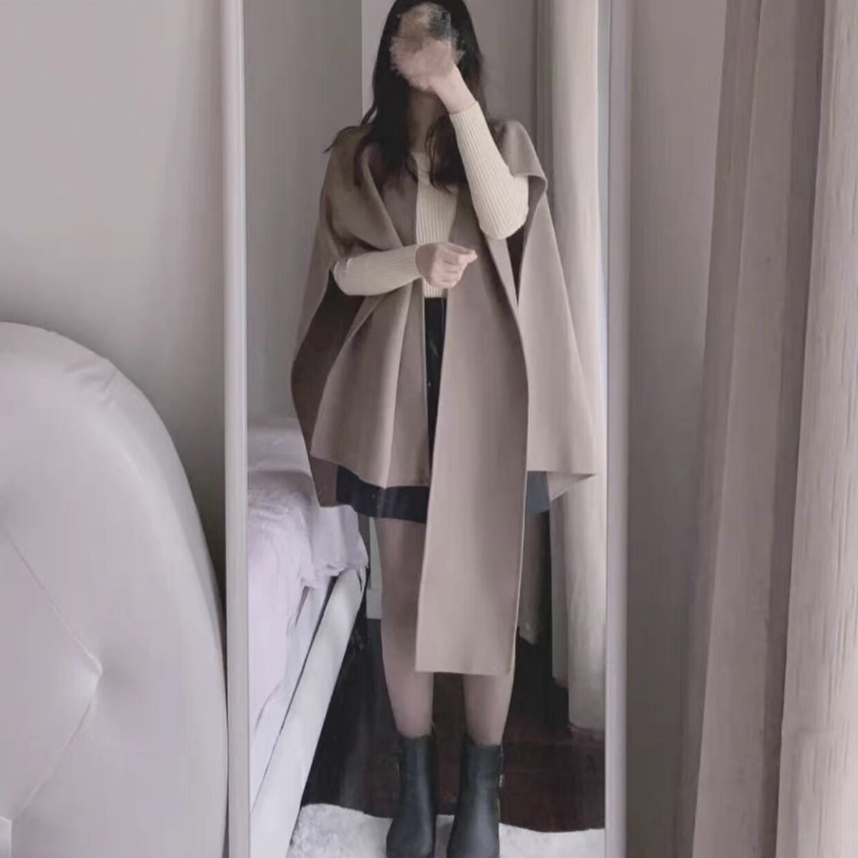 Легкий роскошный стиль 2024 осень и зима нерегулярные свободные двухсторонние шерстяные шали ручной работы пальто плащ